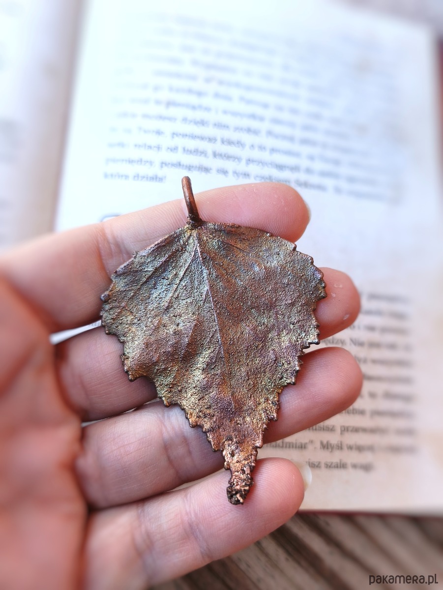 Naturalny liść brzozy, zebrany w pełni lata, został pokryty warstwą miedzi przy użyciu techniki galwanizacji. W ten sposób powstał wyjątkowy amulet prosto z natury — delikatny w formie, a jednocześnie wyrazisty w charakterze.