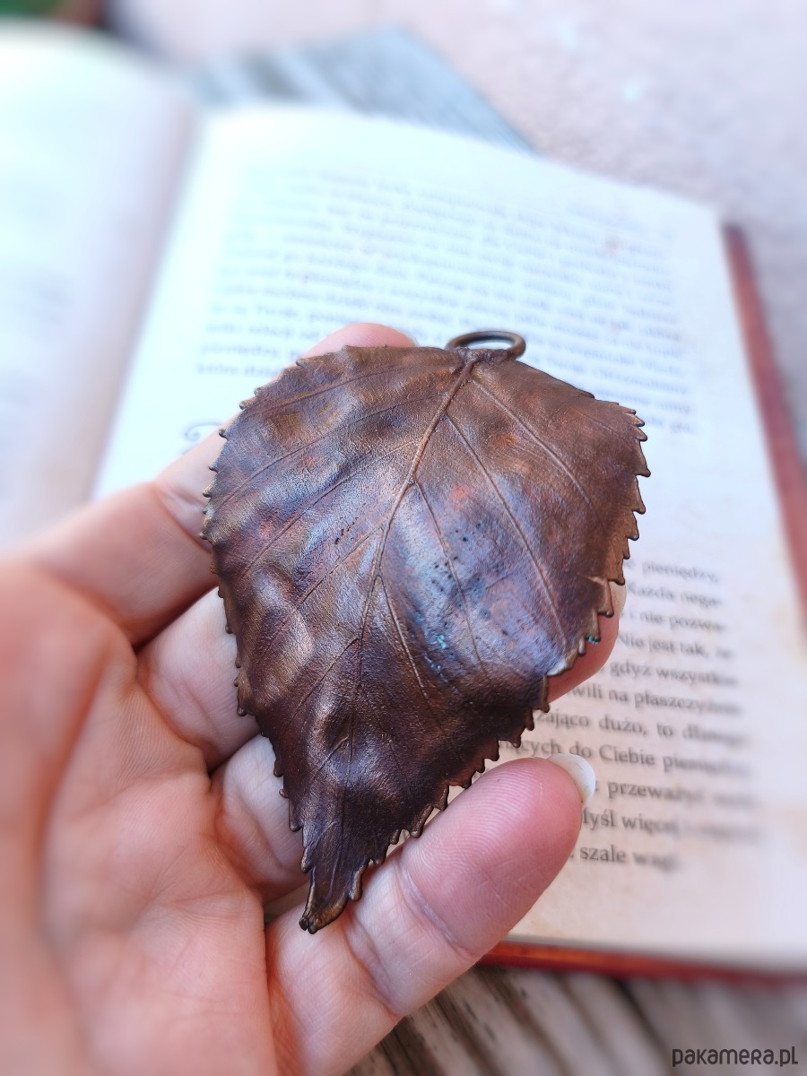 Zawieszony na rzemieniu lub łańcuszku może towarzyszyć Ci każdego dnia jako leśny talizman, łączący symbolikę natury z ciepłem i surowością miedzi. Każdy liść zachowuje swój indywidualny kształt i rysunek, dlatego każda zawieszka jest niepowtarzalna.