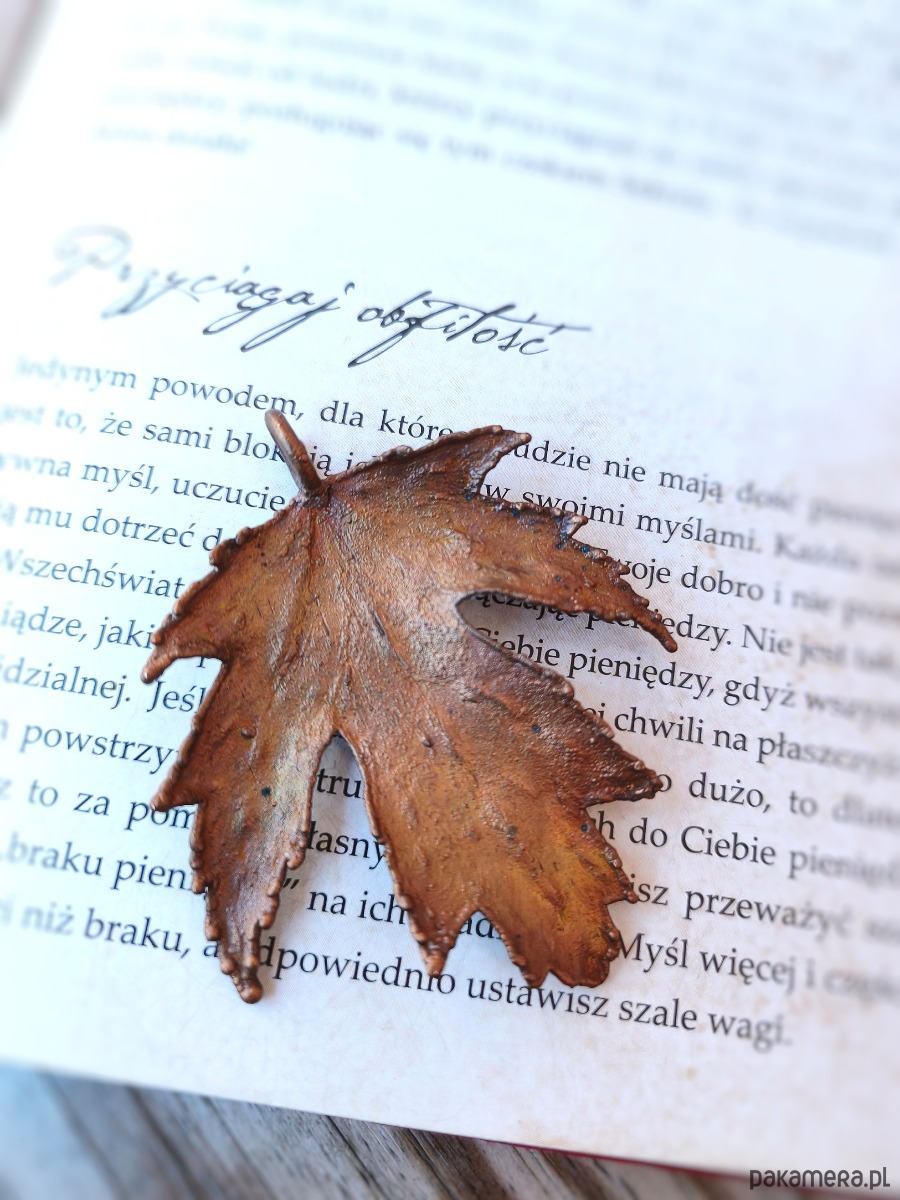 Oksydowana miedź nadaje zawieszce głębi, ciepła i szlachetności. Subtelny połysk pięknie odbija światło, podkreślając jesienny charakter liścia. Rozmiar ok. 6,5 × 5 cm sprawia, że wisior jest wyrazisty, a jednocześnie elegancki — doskonale układa się na dekolcie i przyciąga spojrzenia.