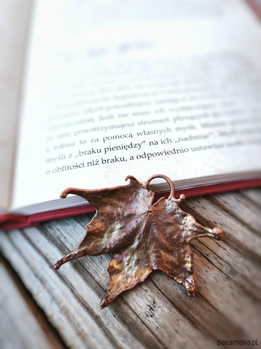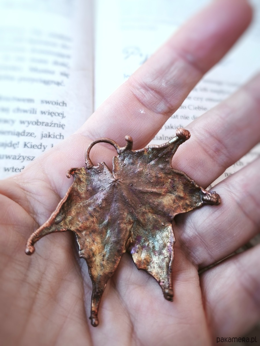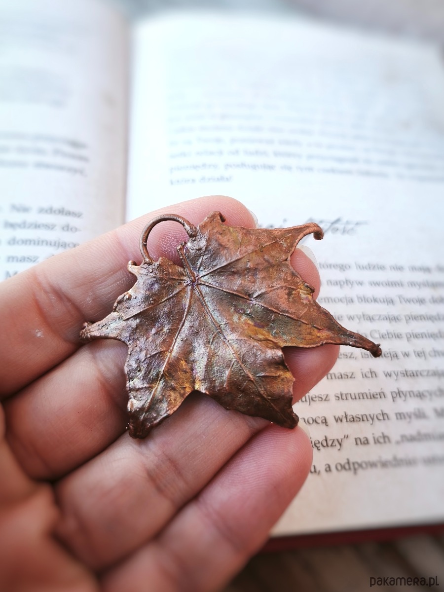 - materiał: naturalny liść klonu, miedź