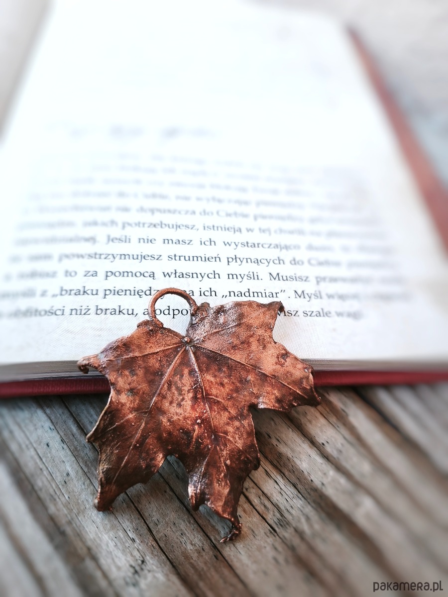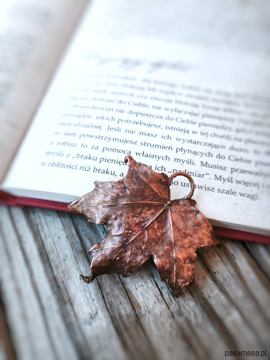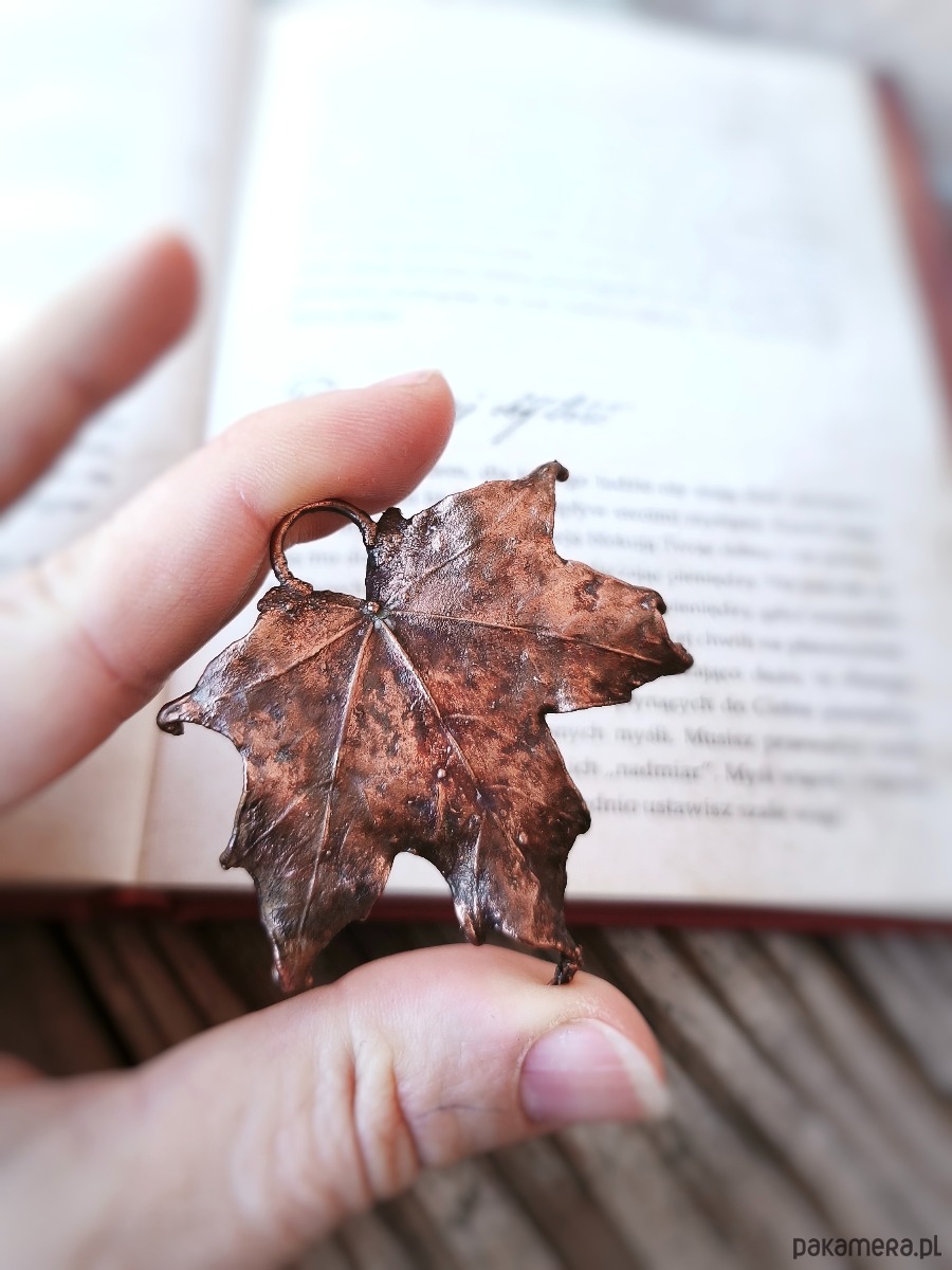 - materiał: naturalny liść klonu, miedź