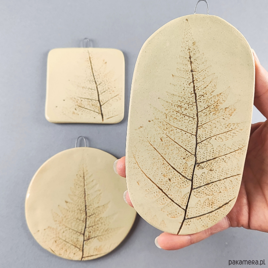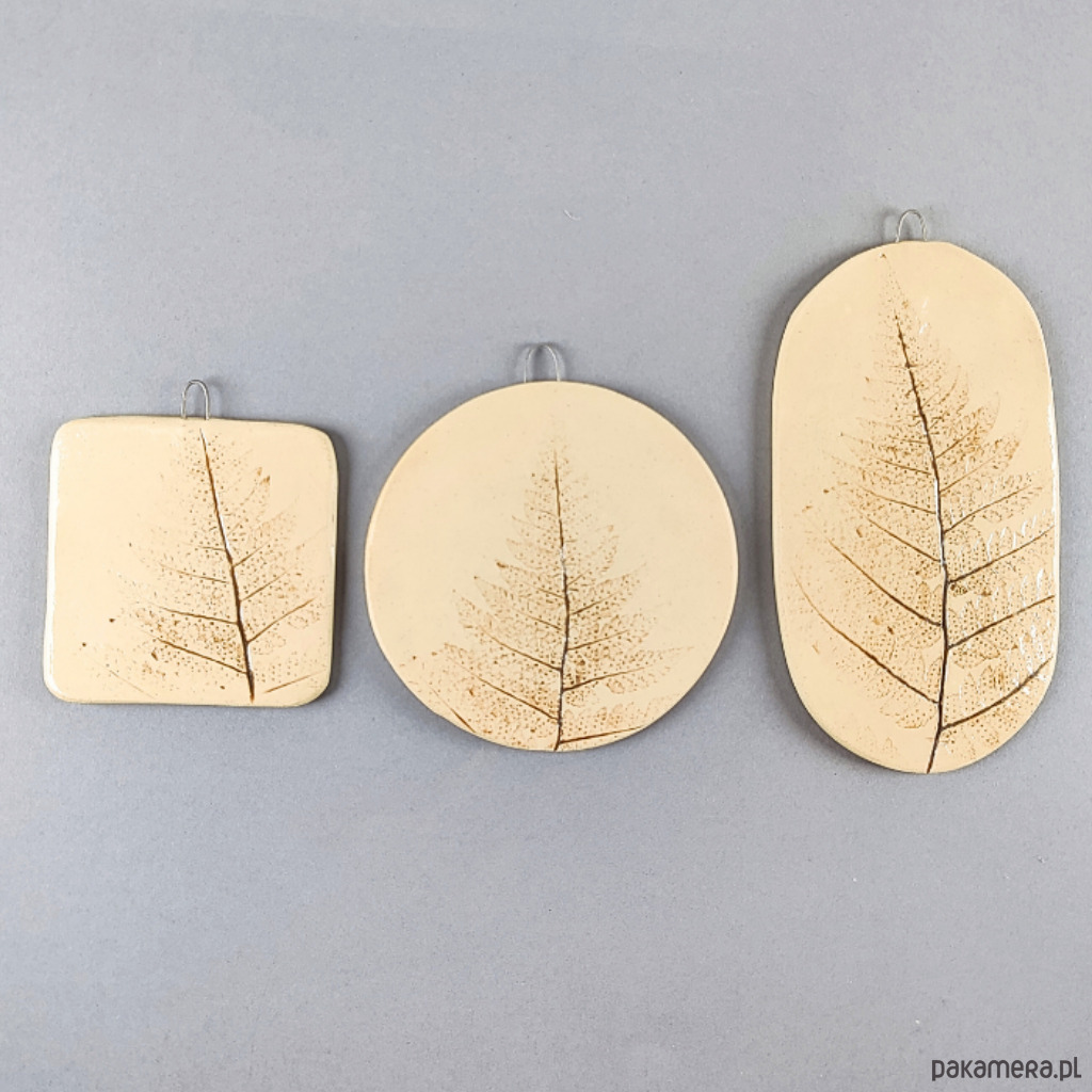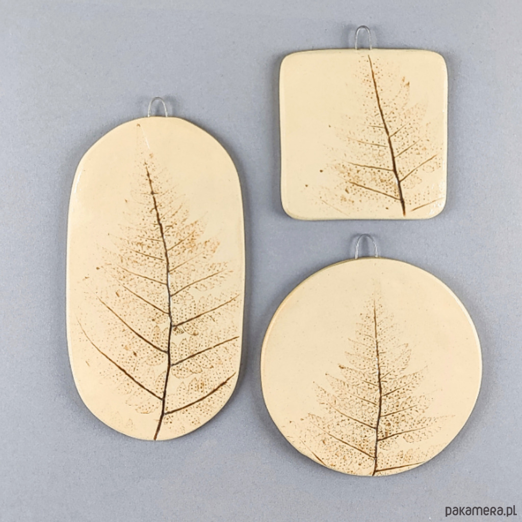 Ręcznie lepione ceramiczne obrazki, wzór paproć, zestaw 3 szt.