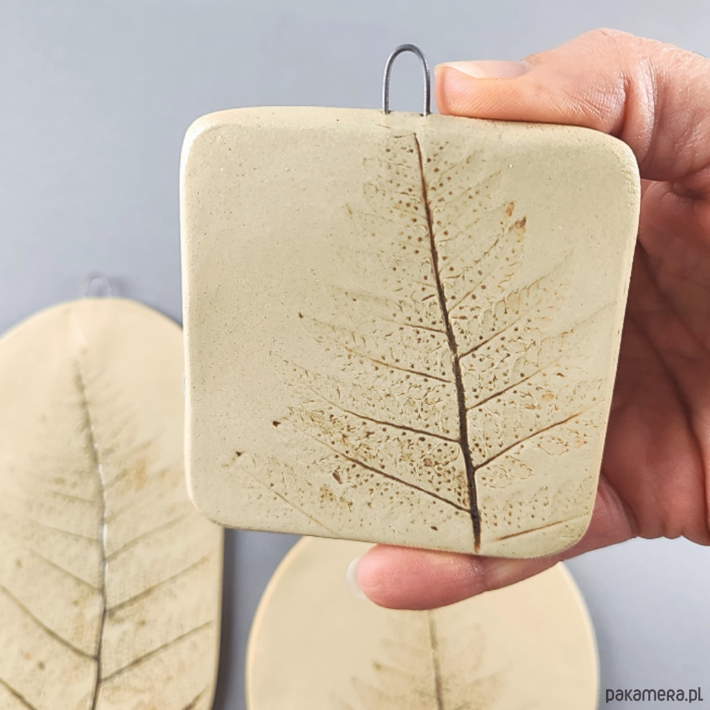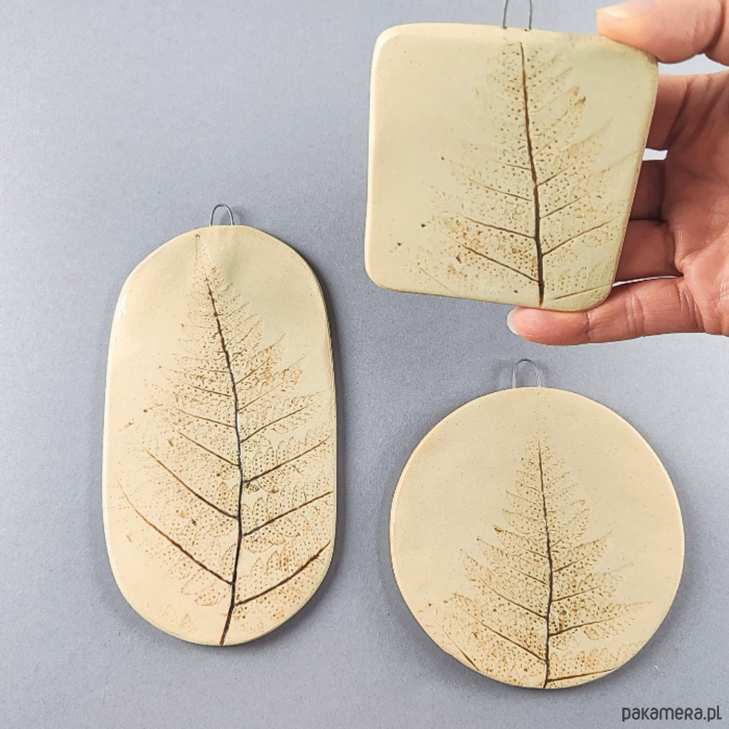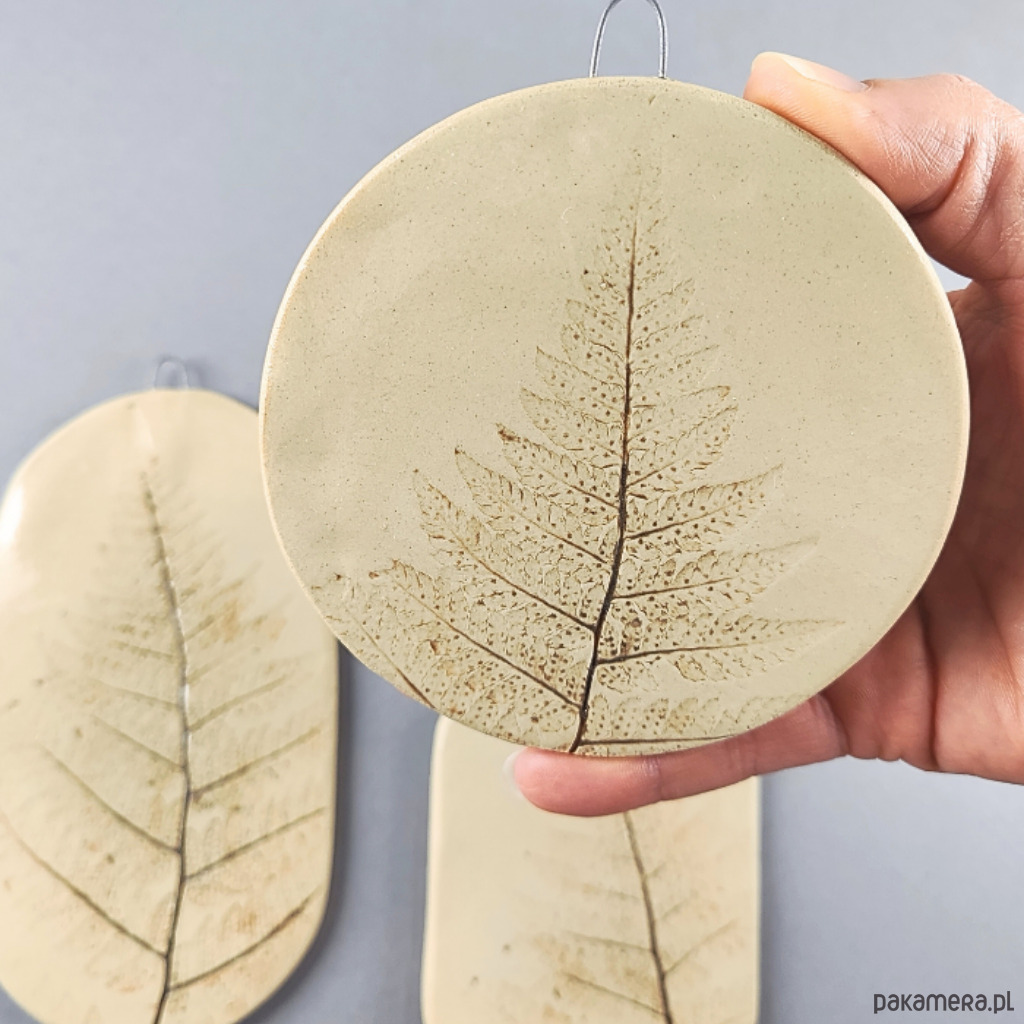 Ręcznie lepione ceramiczne obrazki, wzór paproć, zestaw 3 szt.