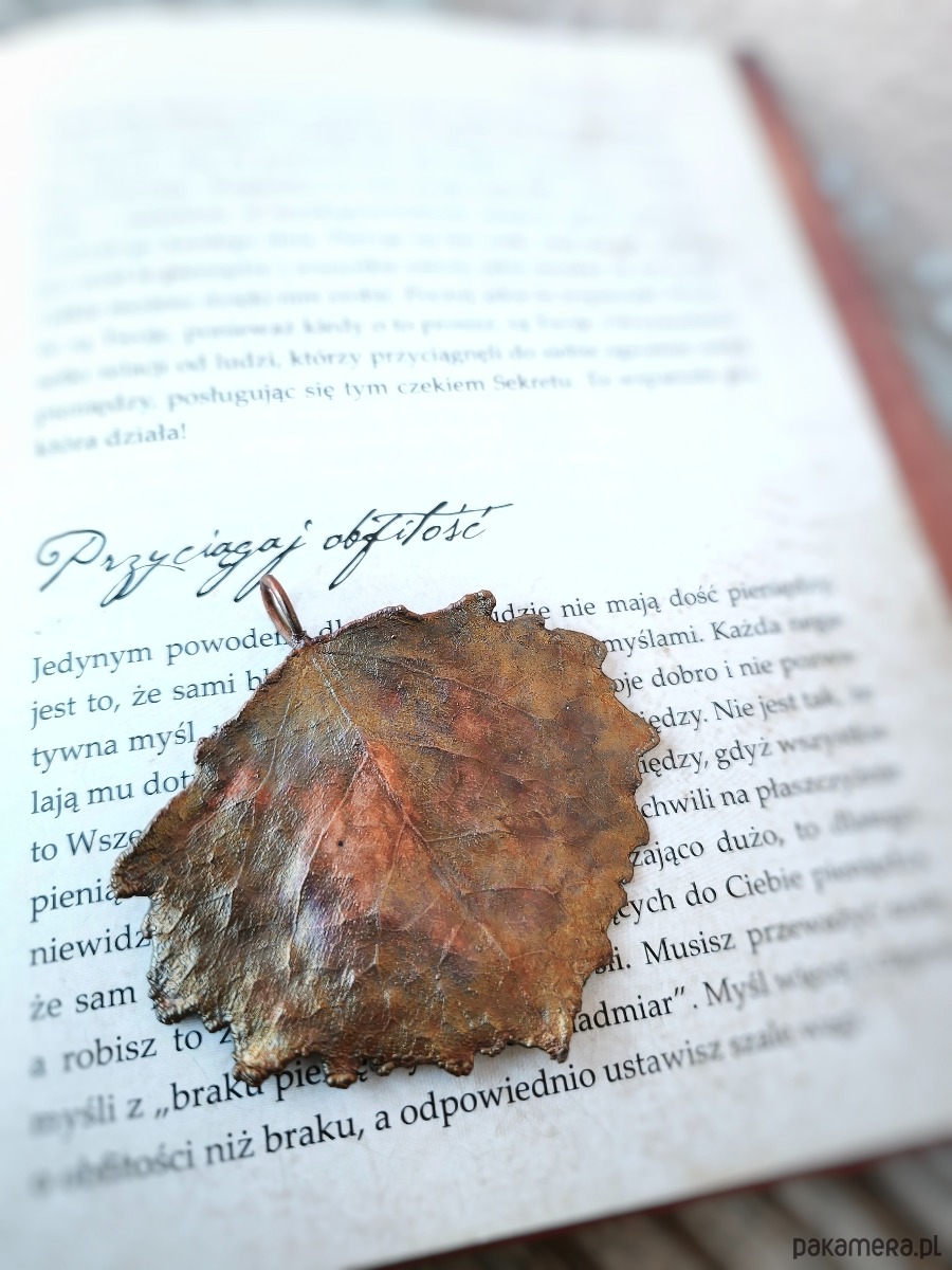 Miedź, otulająca liść, niesie ze sobą energię harmonii, witalności i ochrony. Jej ciepły odcień pięknie podkreśla naturalną teksturę liścia, tworząc amulet łączący naturę, rzemiosło i duchową symbolikę.