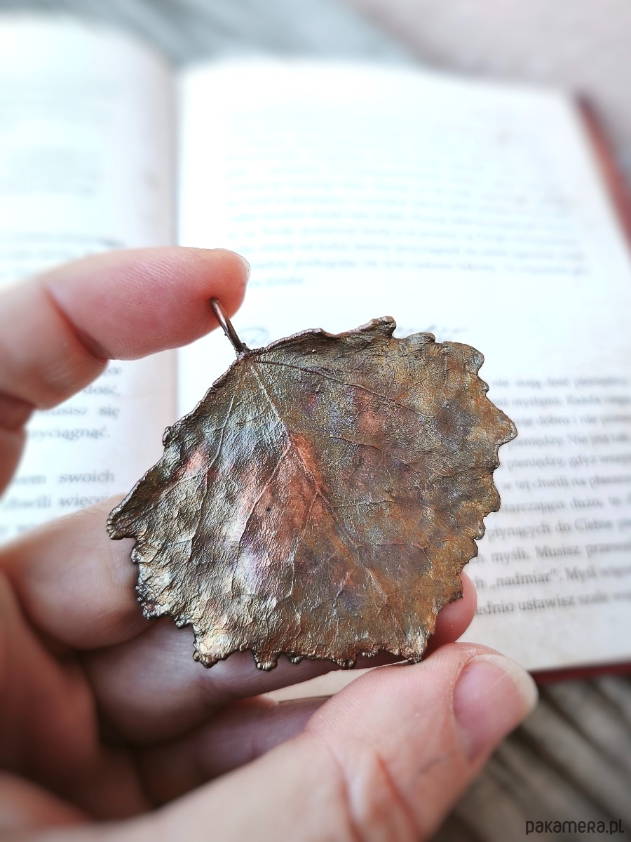 Wyjątkowy wisior stworzony z prawdziwego liścia topoli, zebranego w pełni lata i utrwalonego na zawsze dzięki procesowi galwanizacji miedzi. Każda żyłka, każde subtelne żłobienie i delikatna struktura topolowego liścia zostały wiernie zachowane, tworząc biżuterię o jedynym w swoim rodzaju charakterze.