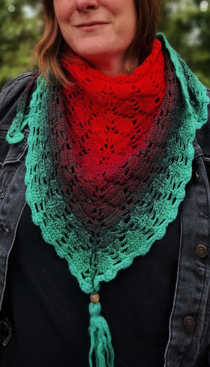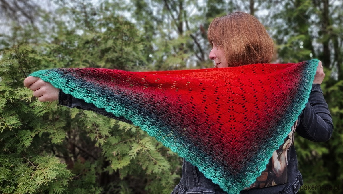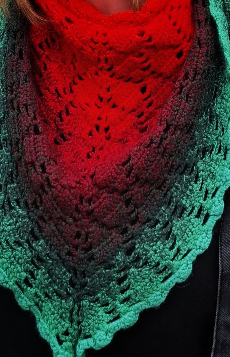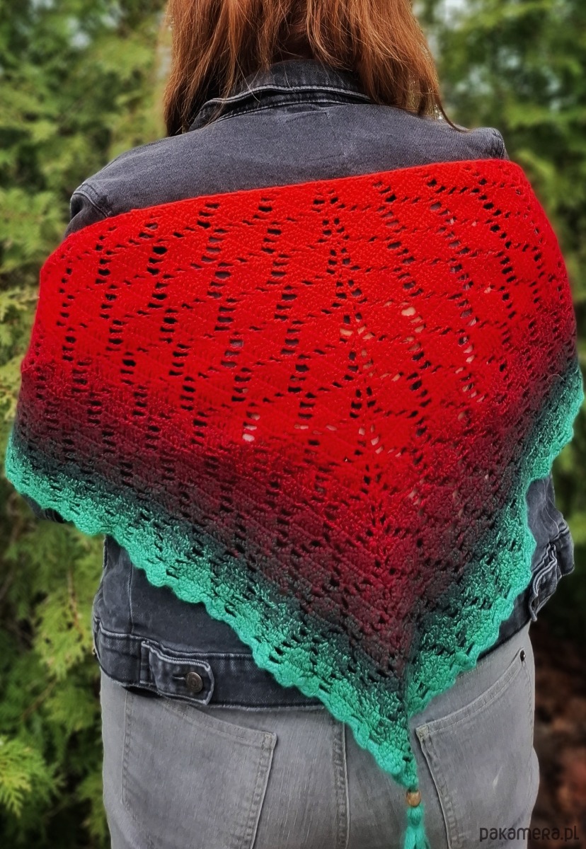 Wyjątkowa, ręcznie wykonana chusta szydełkowa, która przyciąga uwagę intensywną kolorystyką i delikatnym, ażurowym wzorem. To połączenie wygody, ciepła i wyrazistego stylu – idealne dla osób, które lubią wyróżniać się dodatkami.