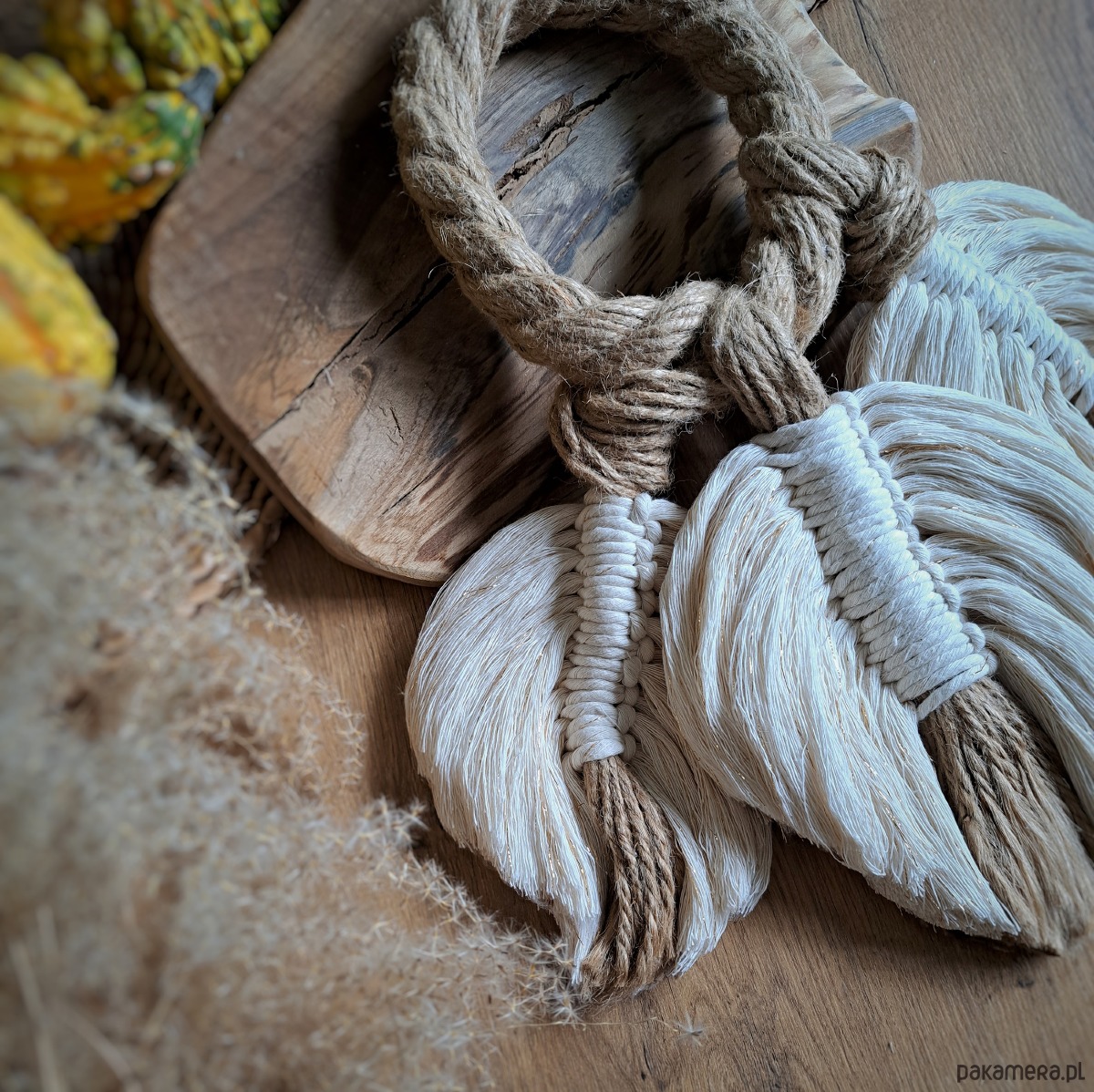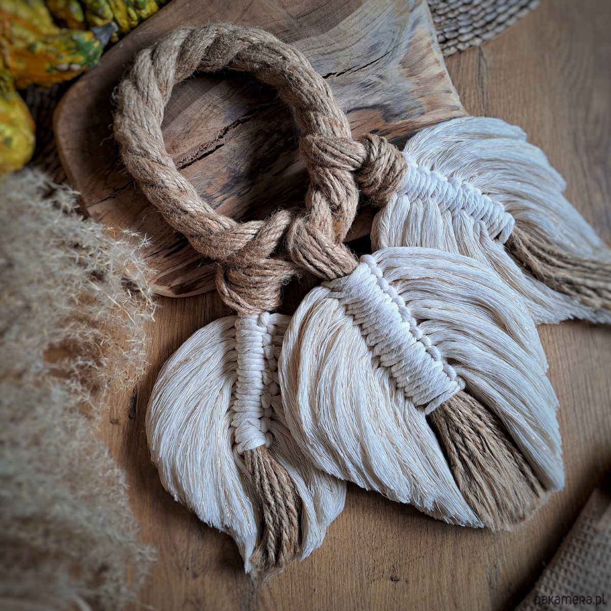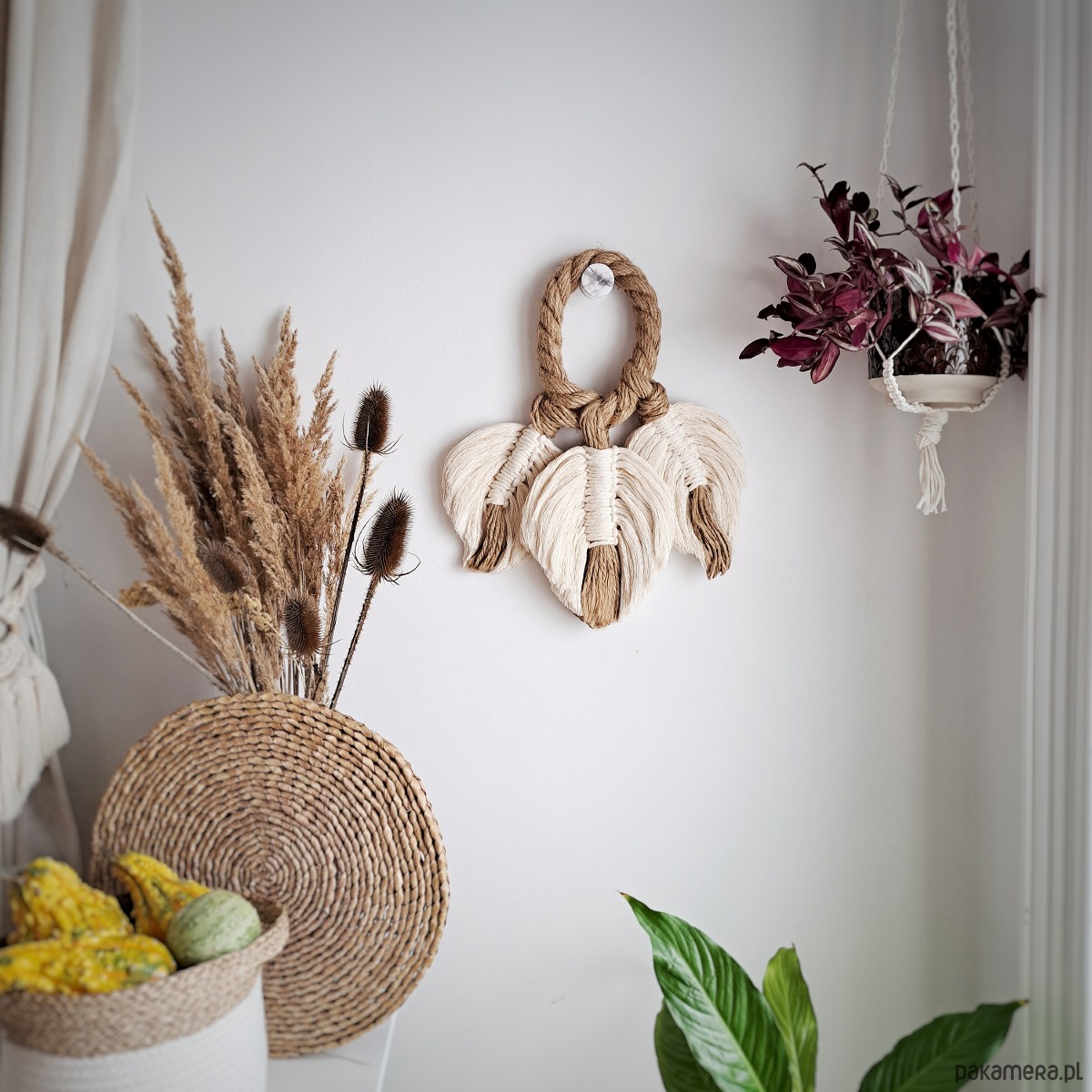 - Zawieszka ścienna jest wykonana z bawełny organicznej pochodzącej z recyklingu i juty.