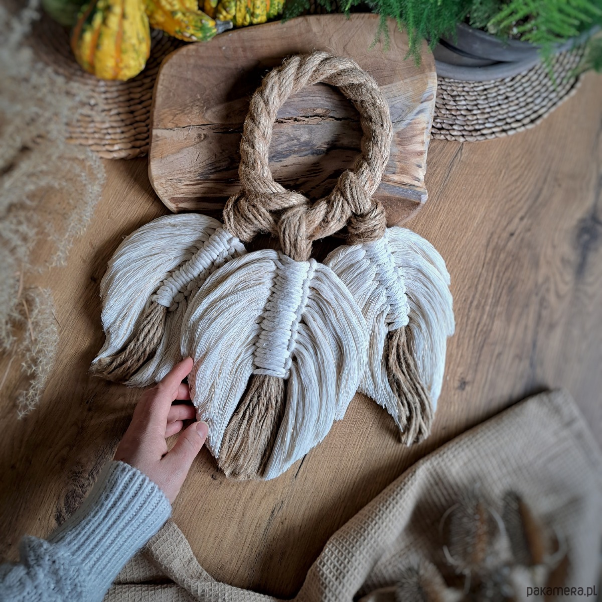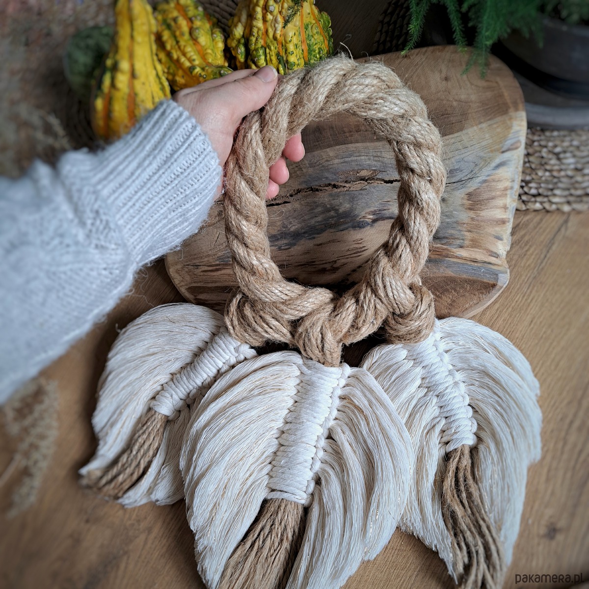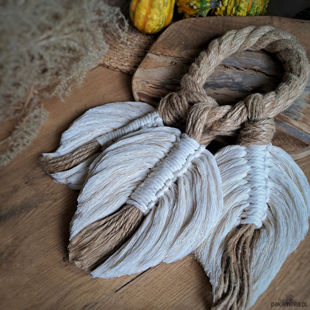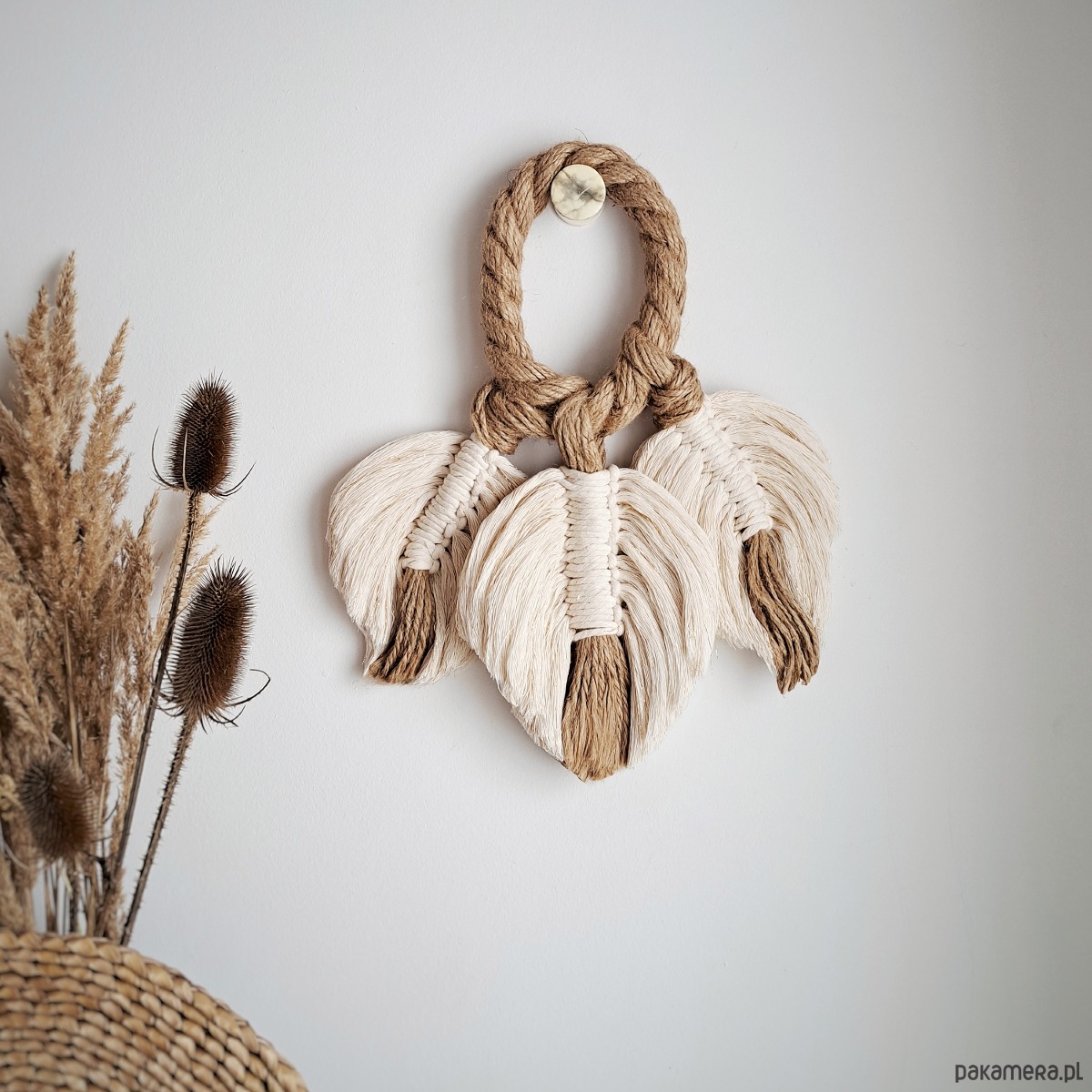 - Zawieszka ścienna jest wykonana z bawełny organicznej pochodzącej z recyklingu i juty.