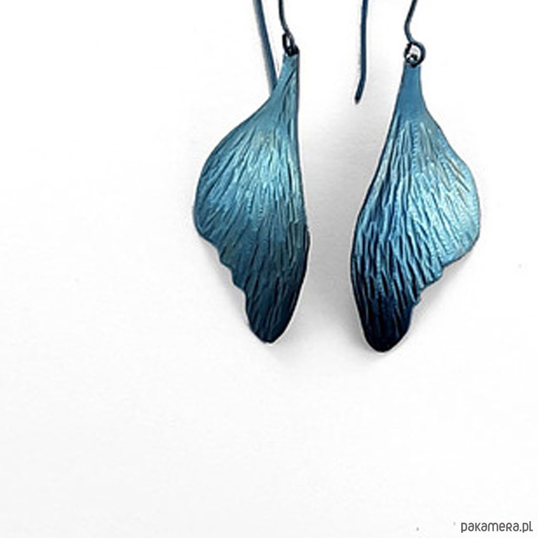 Kolczyki w kształcie liści w całości zrobiłem ręcznie z tytanu.Są lekkie, efektowne i mienią się kolorami.Są wielkości 2 cm i długości 4,5 cm.W całości kolczyki są długości ok.5,5 cm. Zawieszka z tytanu .Na odwrocie sygnowane wygrawerowanym podpisem.Tytan jest niezwykle lekkim i trwałym metalem który nie wywołuje żadnych alergii-jest hipoalergiczny-stosowany w chirurgii i stomatologii. Odporny na działanie chemikaliów. Anodowany pokrywa się tlenkami o intensywnych kolorach które zachowują swą barwę przez wiele lat.