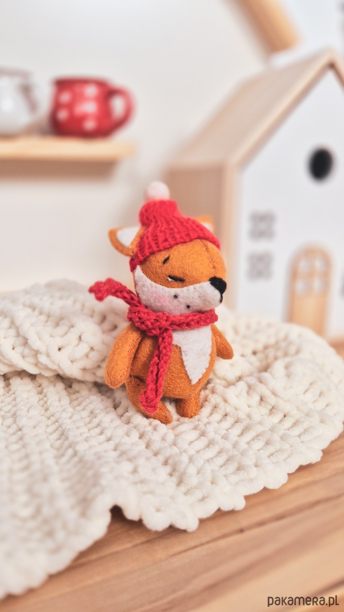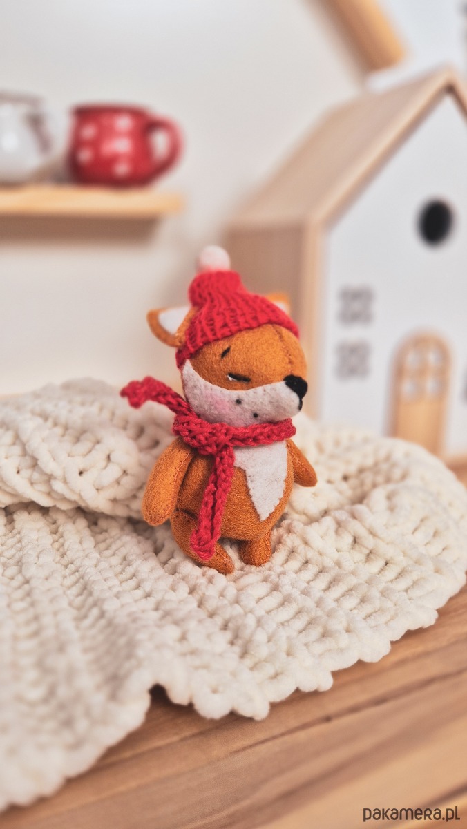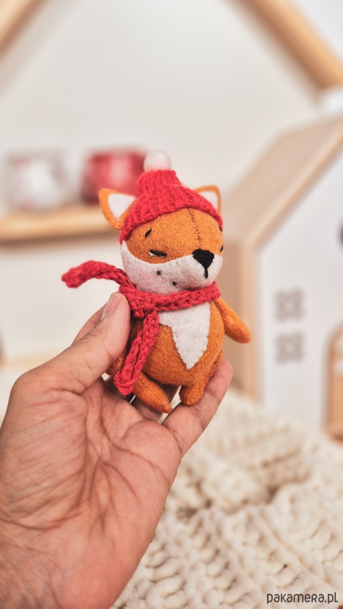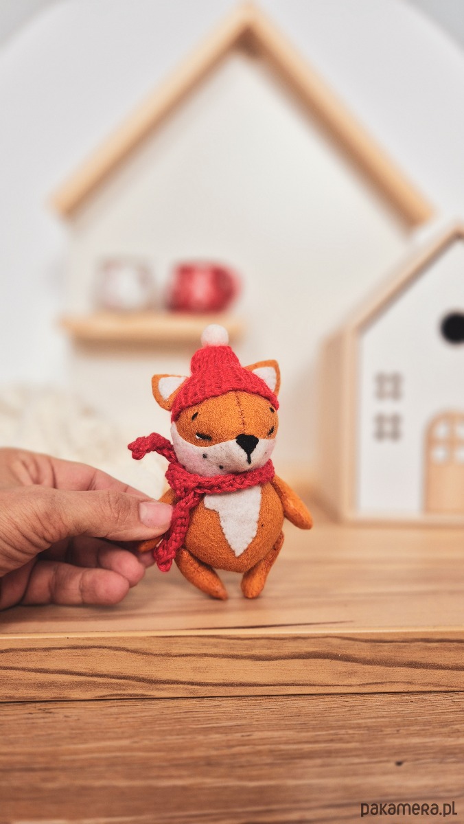 Lisek jest wykonany całkowicie ręcznie z wełnianego filcu.