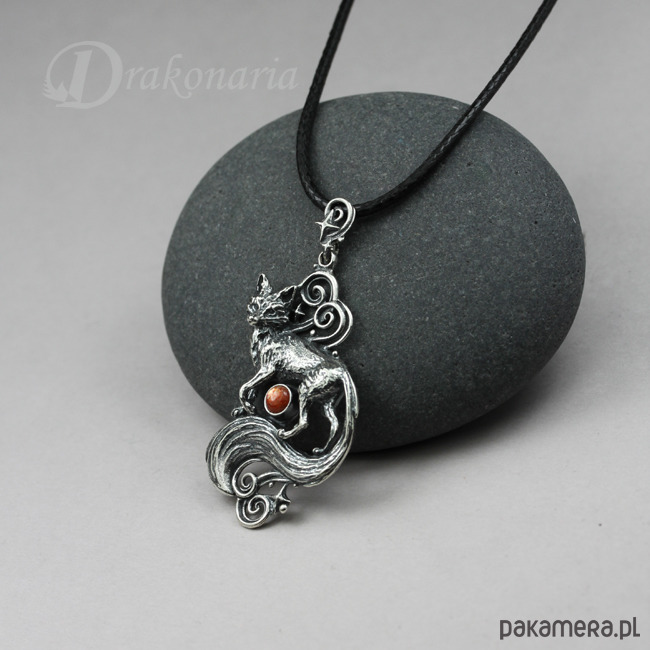 Każdy detal tej pracy - sam lisek, maleńkie gwiazdki, magiczny wiatr -zostały wyrzeźbione przeze mnie ręcznie. Wisior oksydowany i polerowany.