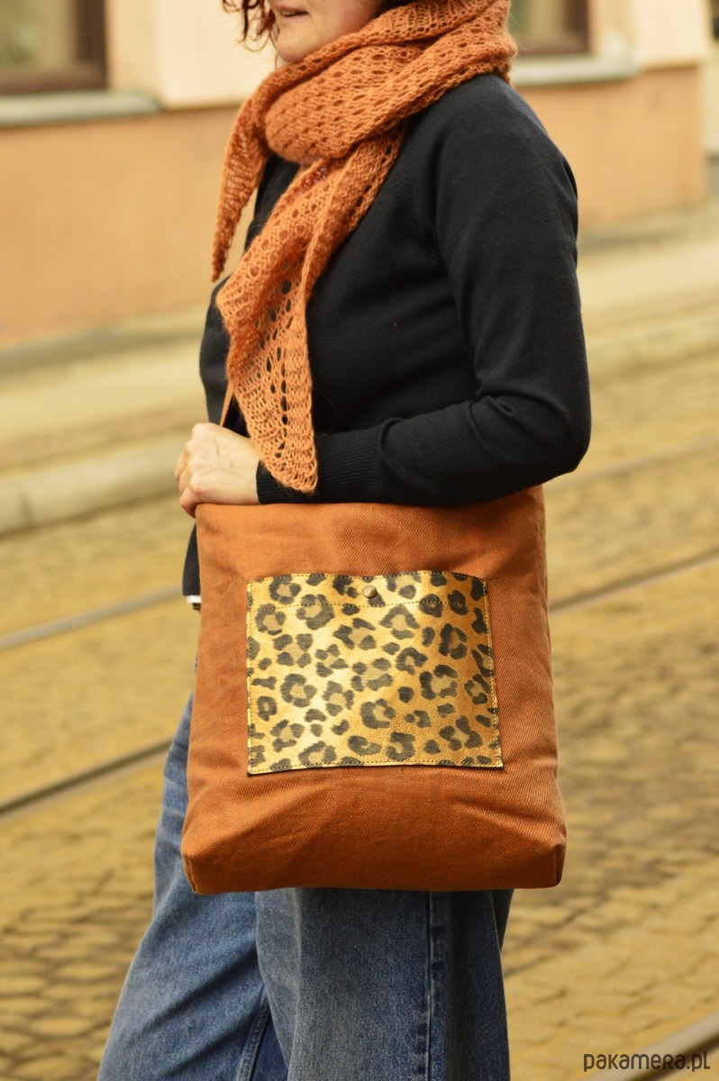 Torba powstała z lnu oraz skóry naturalnej (regulowany pasek, łączenia). Dodatkowo torebka jest wzmocniona warstwą wodoodporną. Torba zapina się na suwak, a wewnątrz znajduje się kieszonka.