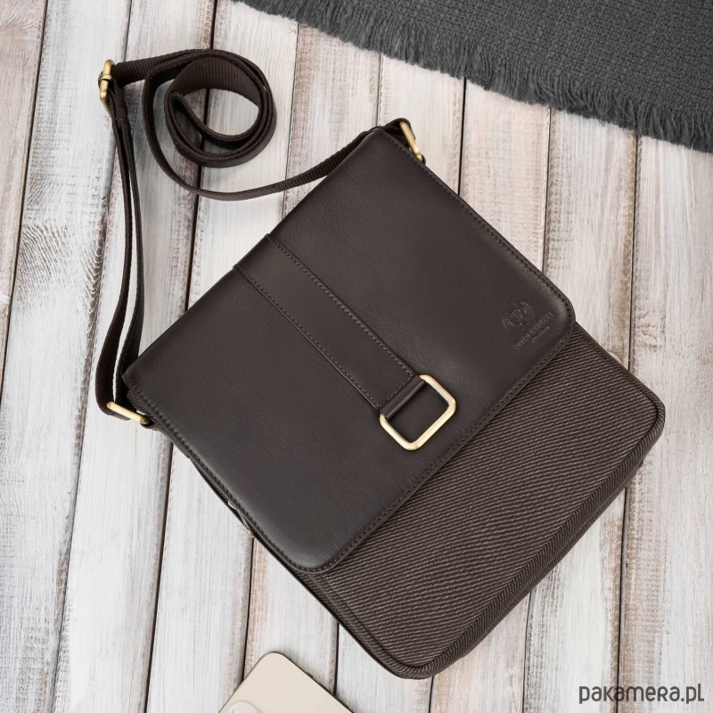 Listonoszka męska ze skóry naturalnej i canvasu AY-01-BR