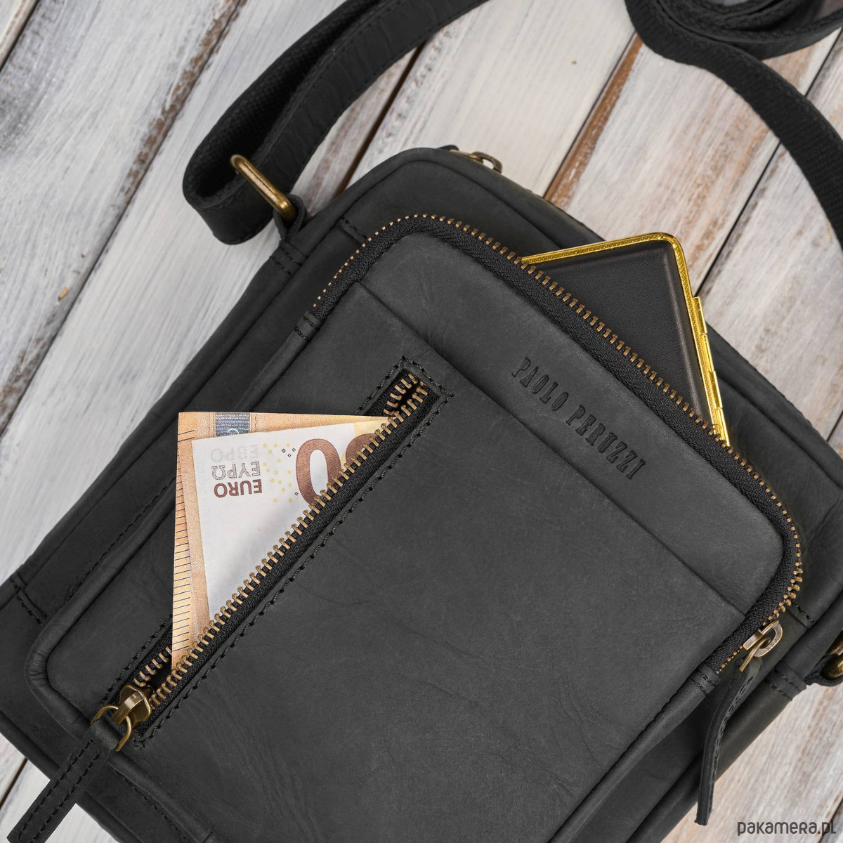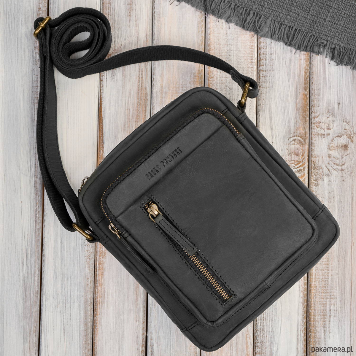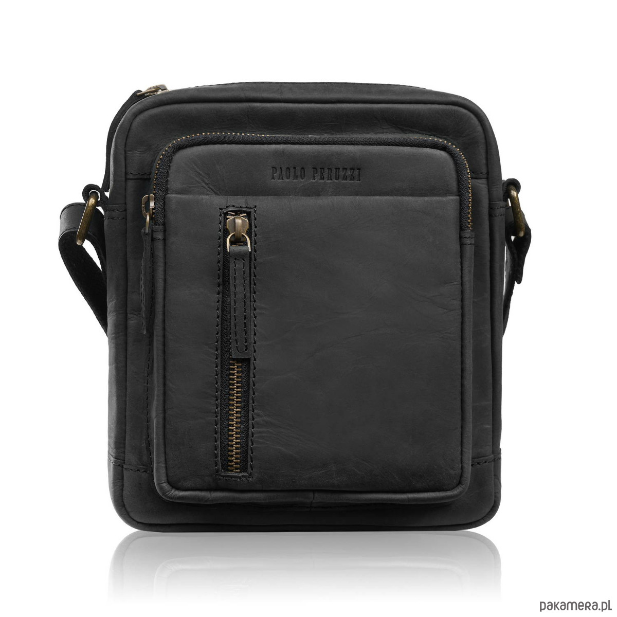 Listonoszka męska skórzana saszetka na ramię czarna IM-01-HBL Paolo Peruzzi
