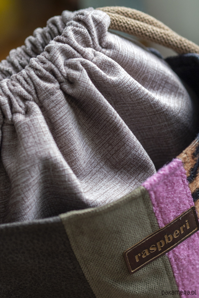 Całość ściągana grubym, bawełnianym sznurkiem w kolorze jasnobrązowym.