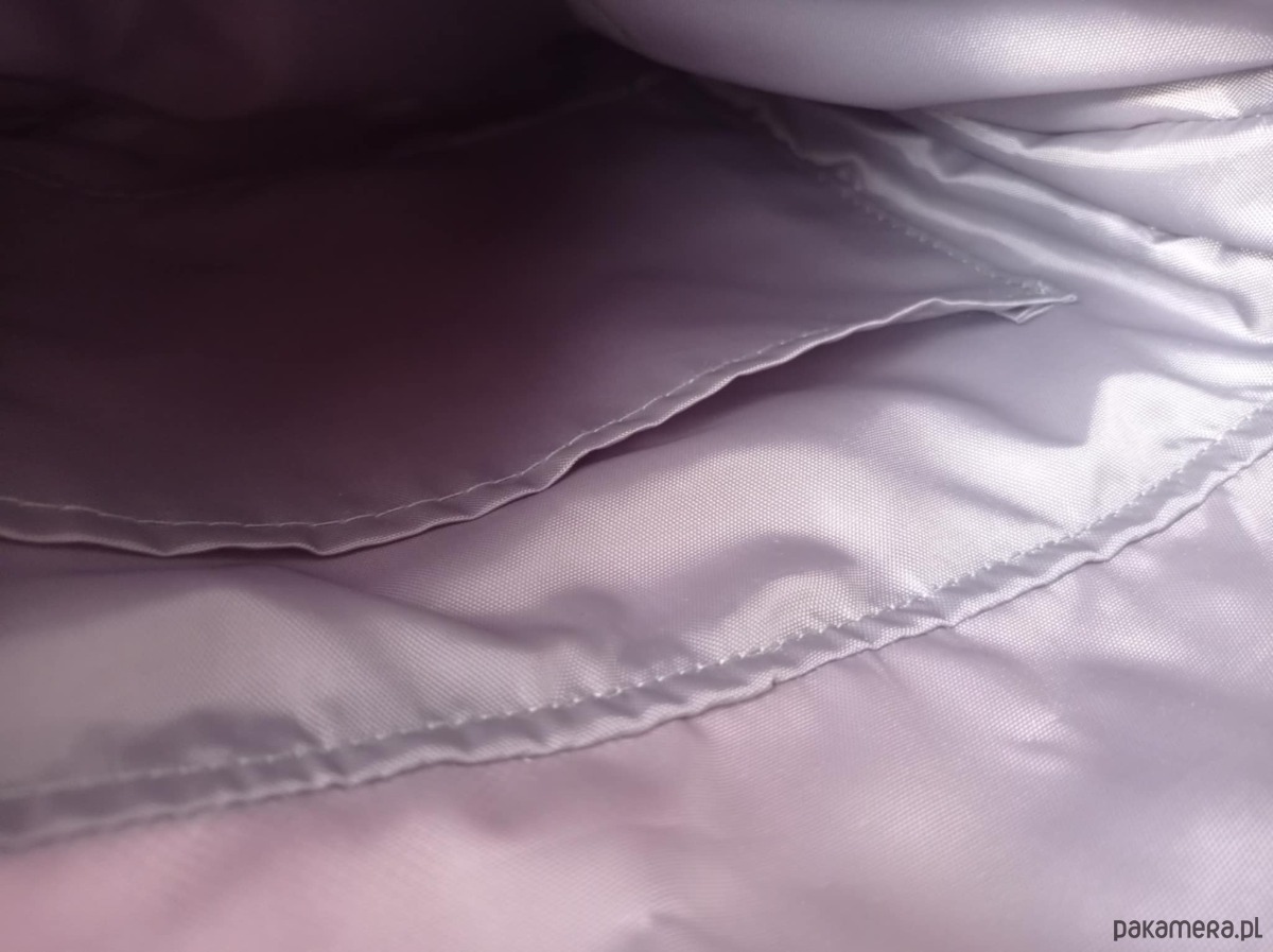 Wewnątrz znajduje się szara, gładka podszewka z kieszenią.