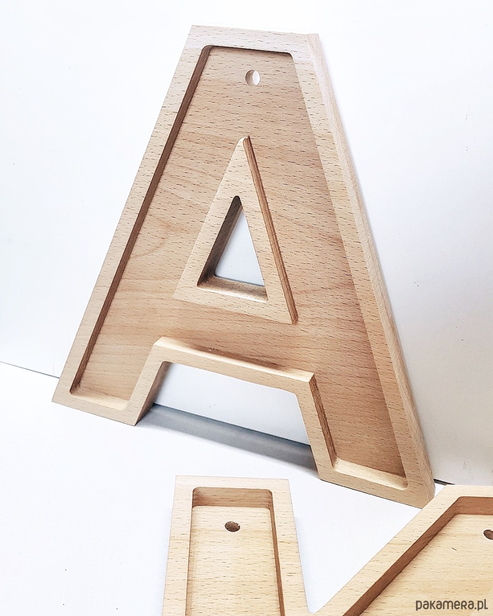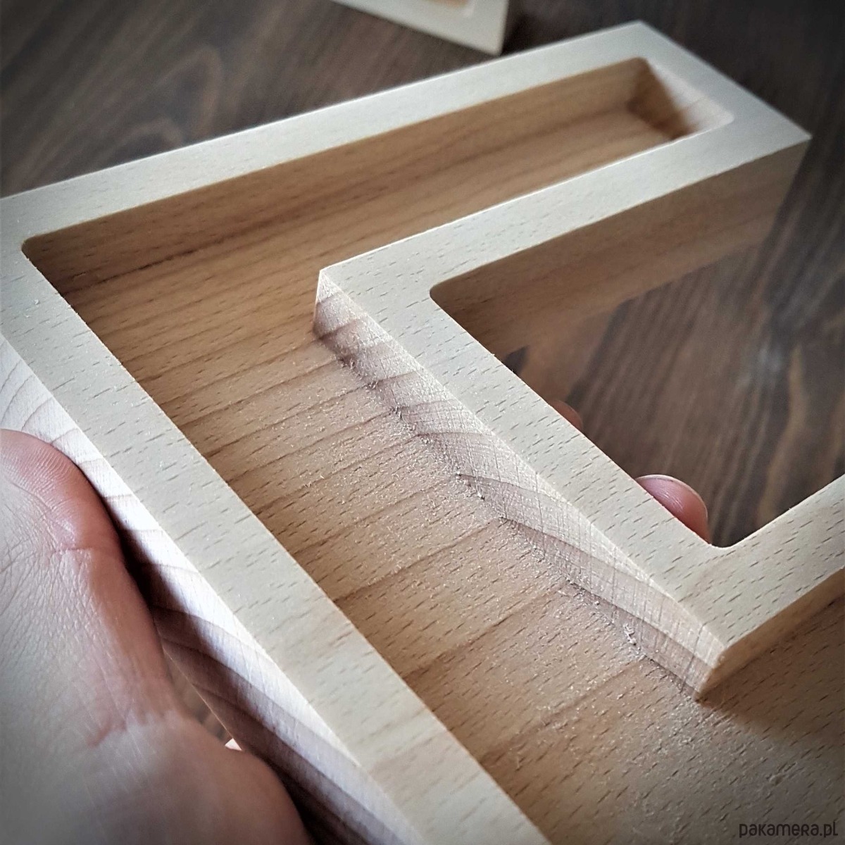 Litery z litego drewna jesionowego ze żłobieniem – dekoracja 3D