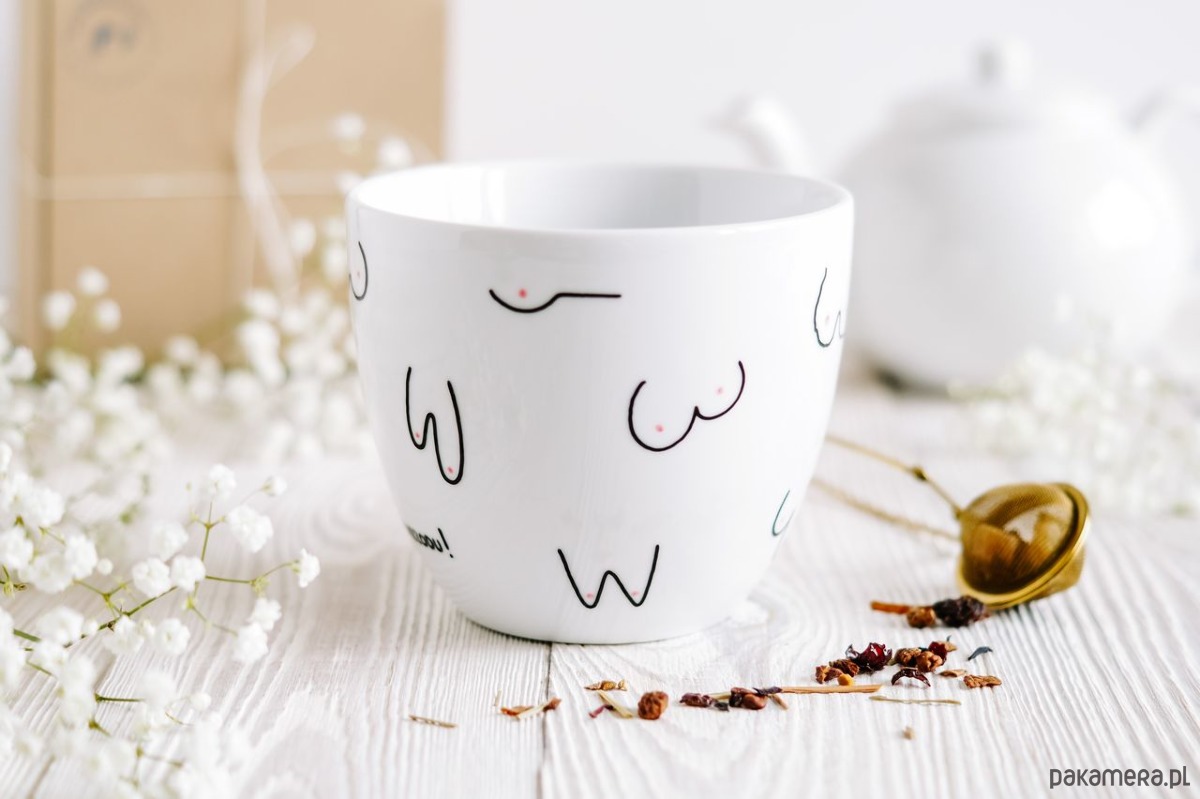 Kubek wysyłamy estetycznie zapakowany, gotowy na prezent. Do każdego dołączamy saszetkę herbaty owocowej.