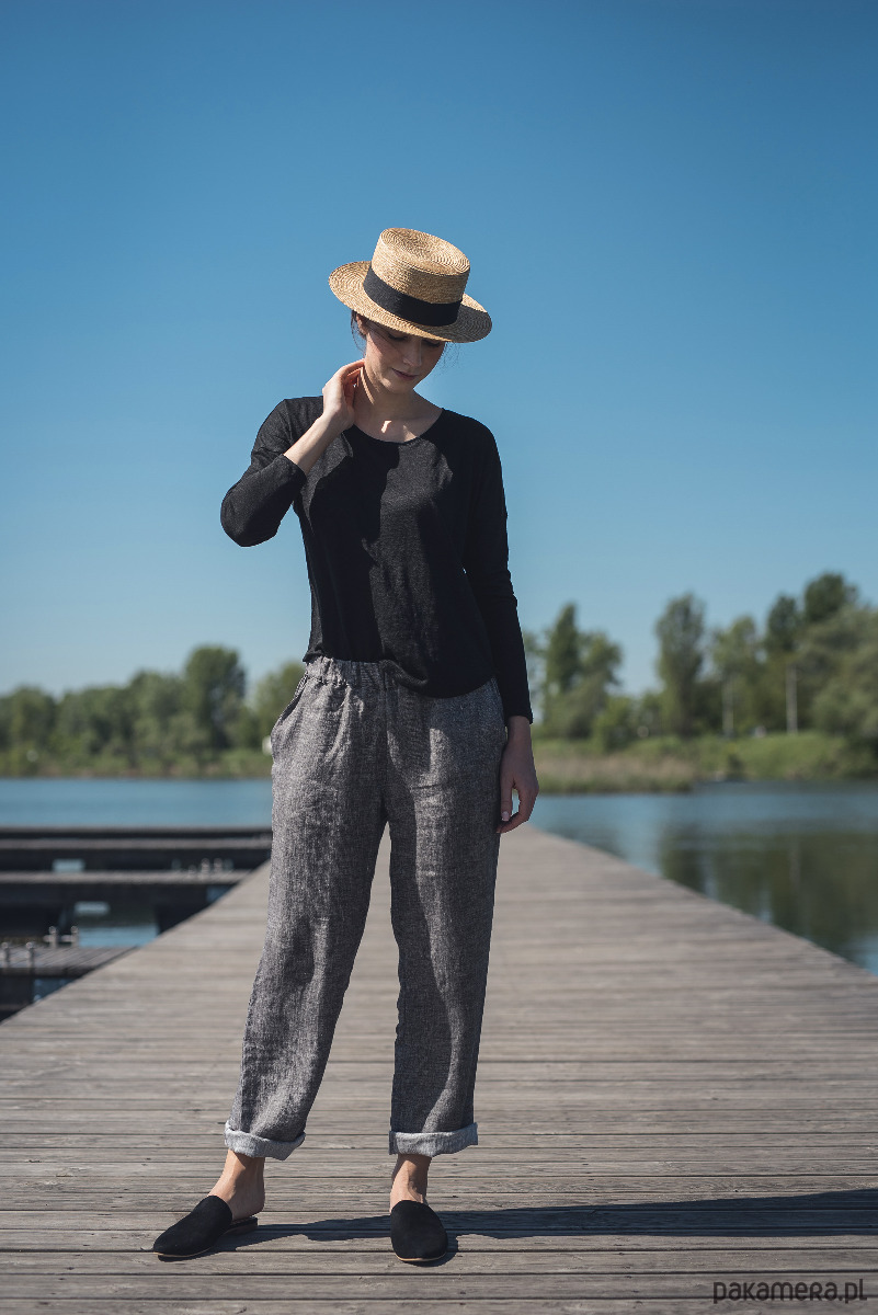 Lniana klasyczna bluzka dzianinowa z długim rękawem w kolorze czarnym. Pięknie dopasowuje się do ciała ponieważ została uszyta z 100% lnianej , specjalnie zmiękczanej dzianiny. Szczególnym detalem tej kolekcji jest specjalnie zaprojektowana metka, widoczna na ostatnim zdjęciu. To szczególne przesłanie dla moich klientek:)