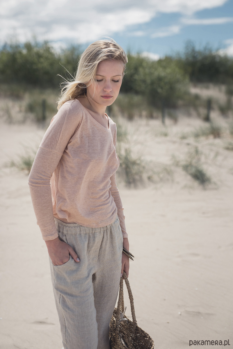 Lniana klasyczna bluzka dzianinowa z długim rękawem w kolorze pastelowo różowym. Pięknie dopasowuje się do ciała ponieważ została uszyta z 100% lnianej , specjalnie zmiękczanej dzianiny. Szczególnym detalem tej kolekcji jest specjalnie zaprojektowana metka, widoczna na ostatnim zdjęciu. To szczególne przesłanie dla moich klientek:)