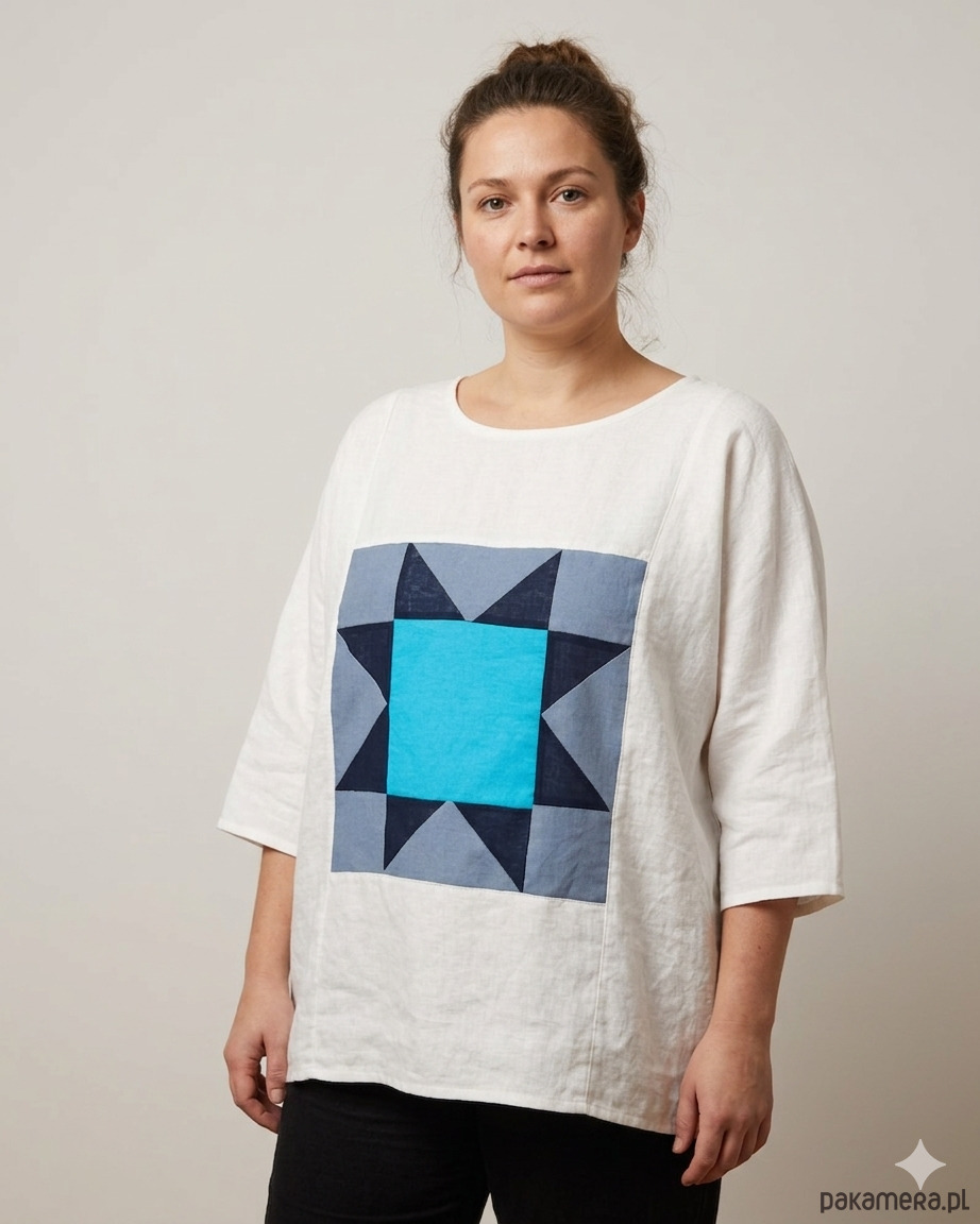 Lniana bluzka z patchworkową gwiazdą