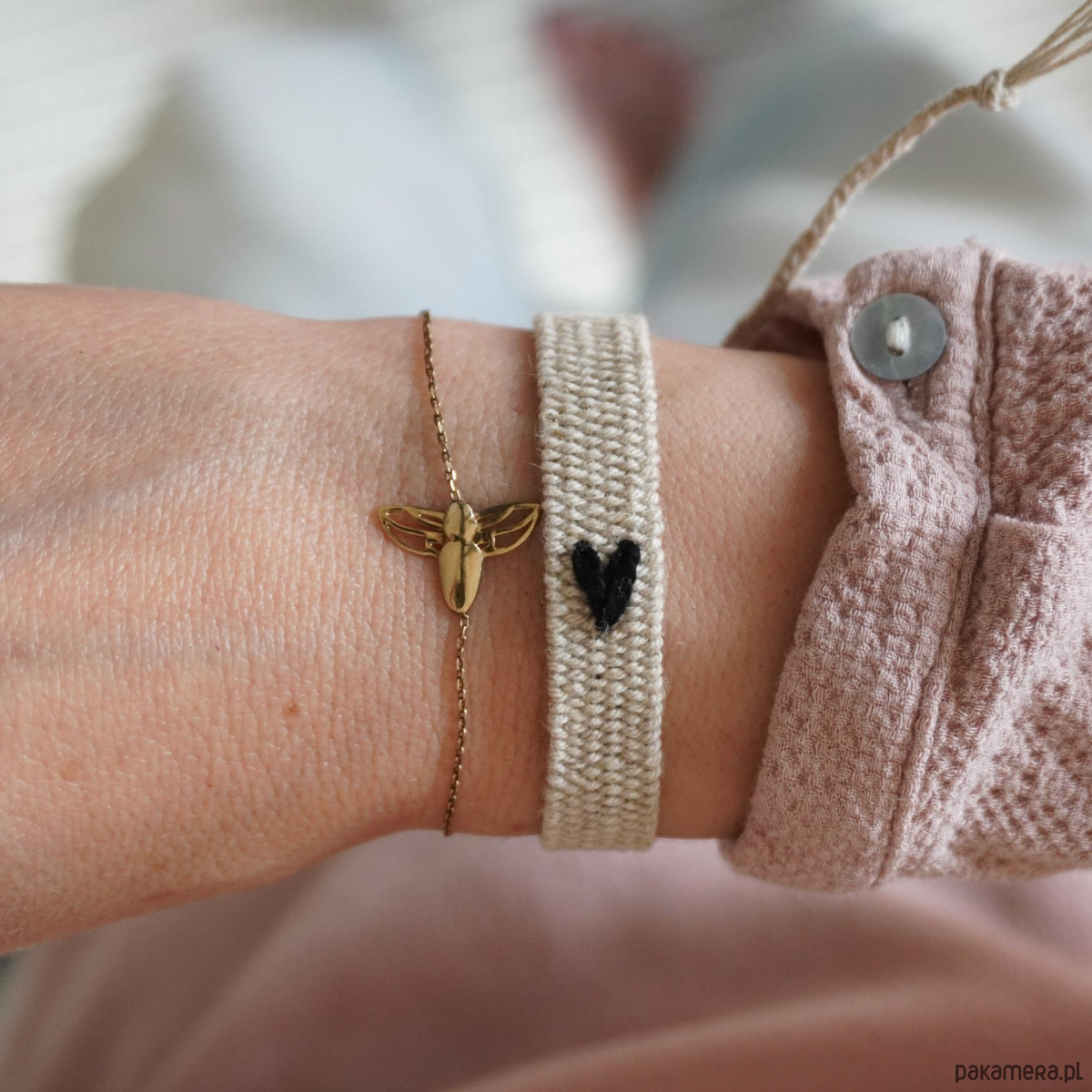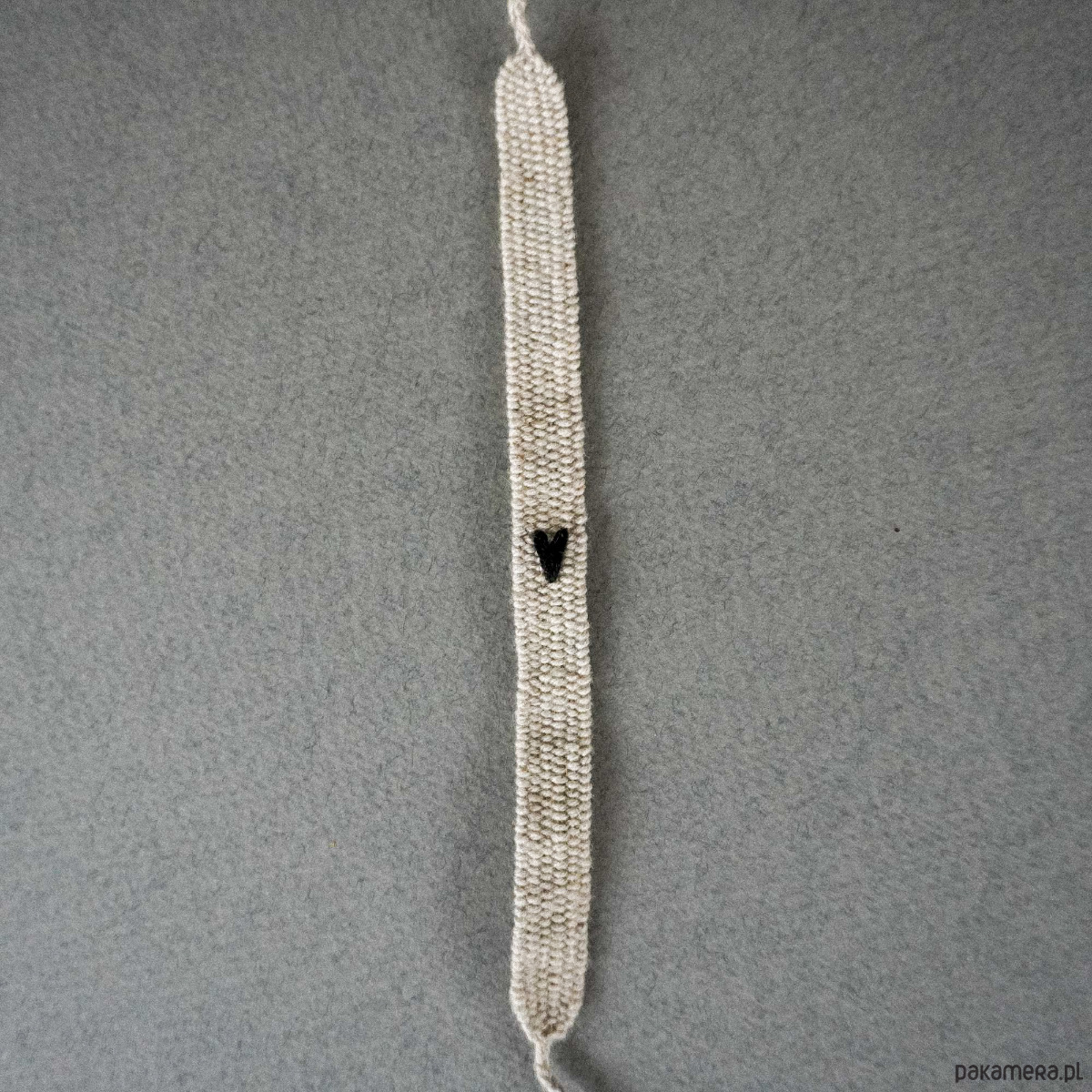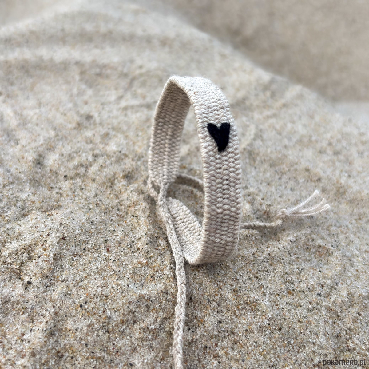 Lniana bransoletka tkana z haftowanym serduszkiem