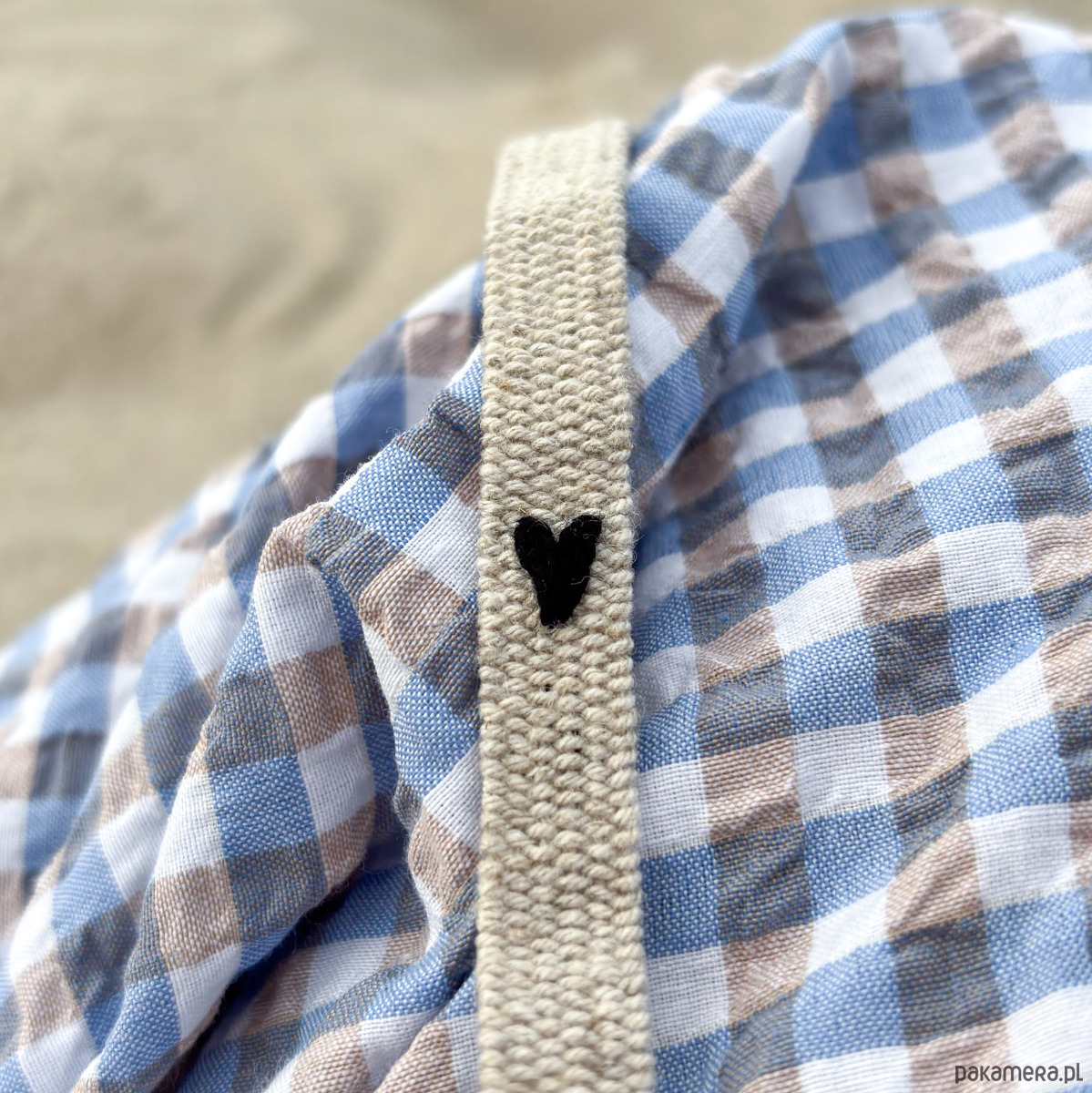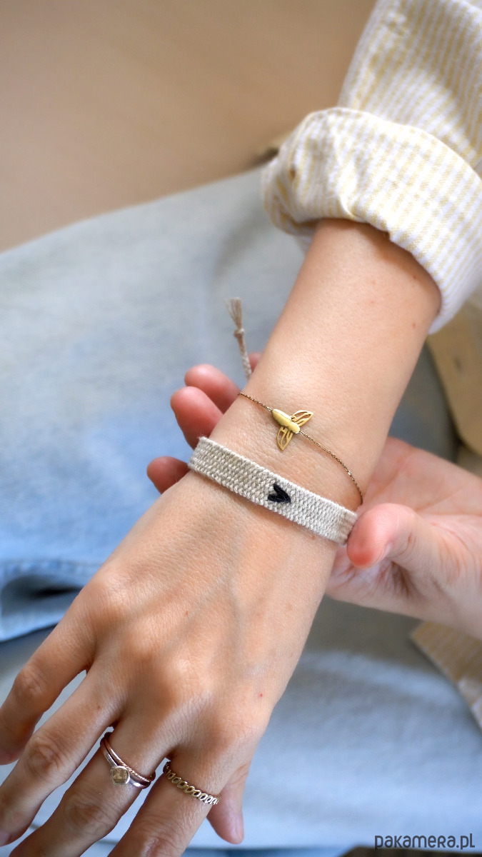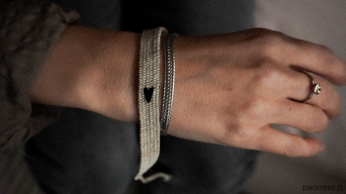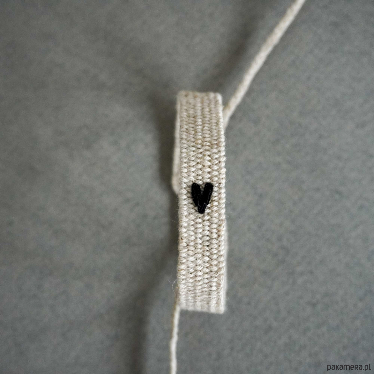 Lniana bransoletka tkana z haftowanym serduszkiem