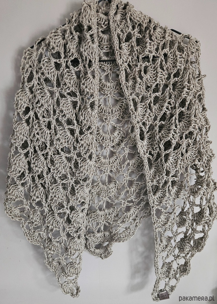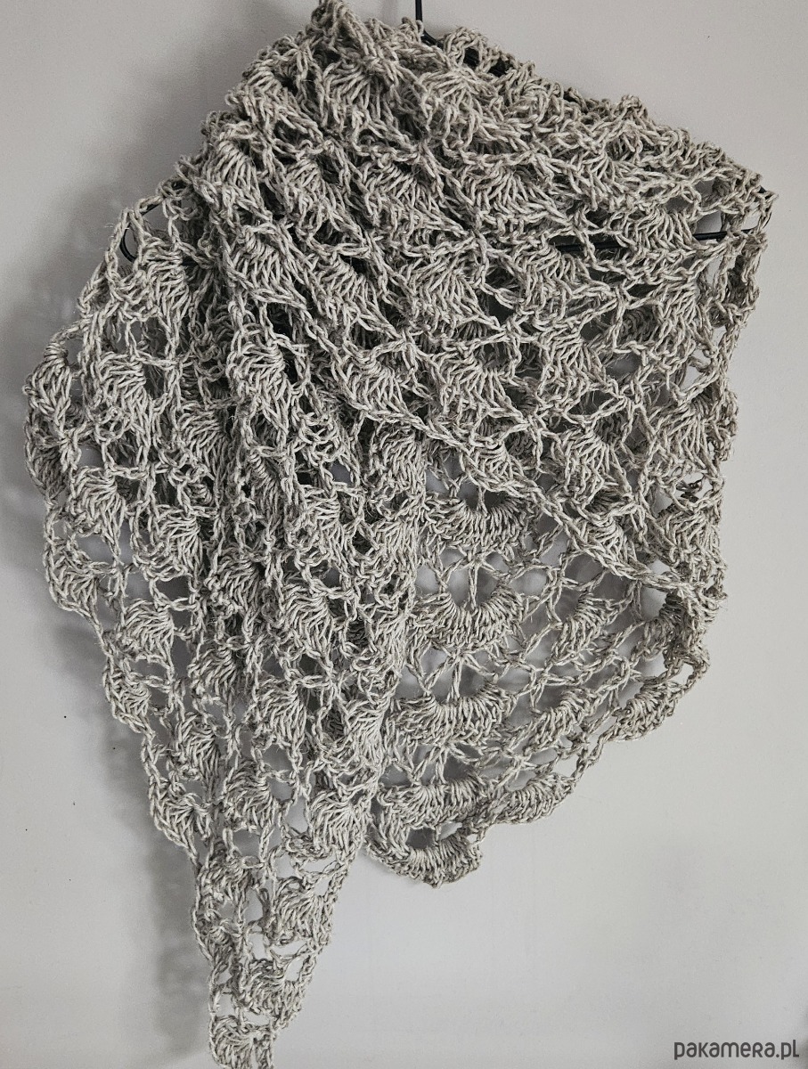 Ręcznie wykonana chusta na szydełku ze sznurka lnianego to połączenie naturalności, prostoty i ponadczasowego stylu. Ażurowy splot sprawia, że chusta jest lekka i przewiewna, a jednocześnie efektowna i przyjemna w noszeniu.