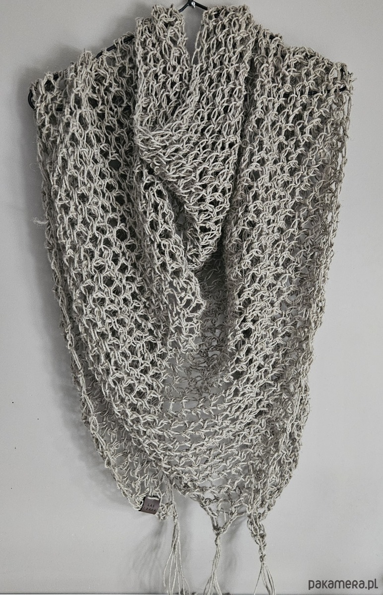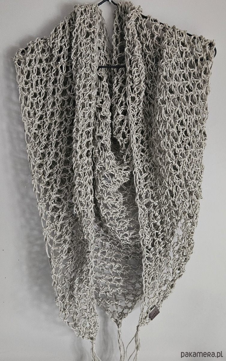 Ręcznie wykonana chusta na szydełku ze sznurka lnianego to połączenie naturalności, prostoty i ponadczasowego stylu. Ażurowy splot sprawia, że chusta jest lekka i przewiewna, a jednocześnie efektowna i przyjemna w noszeniu.