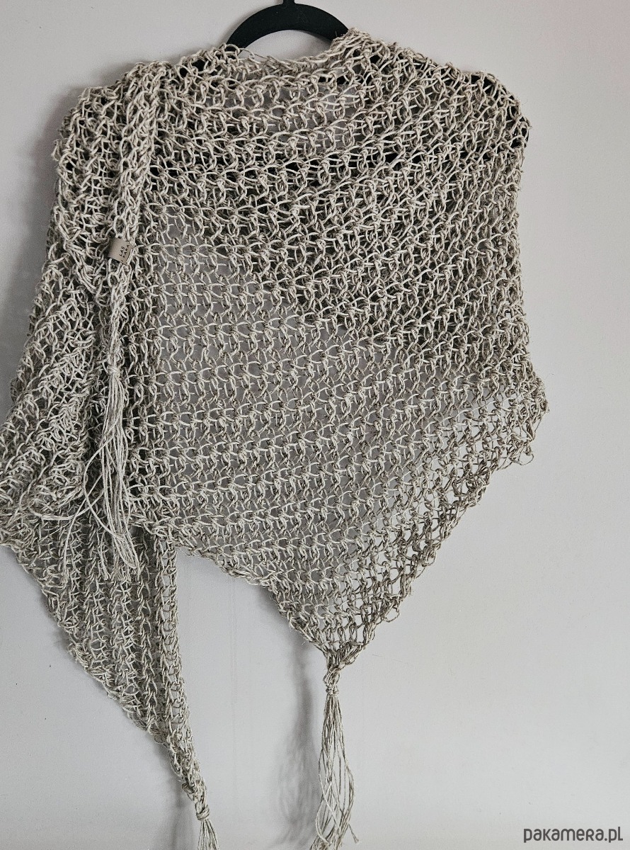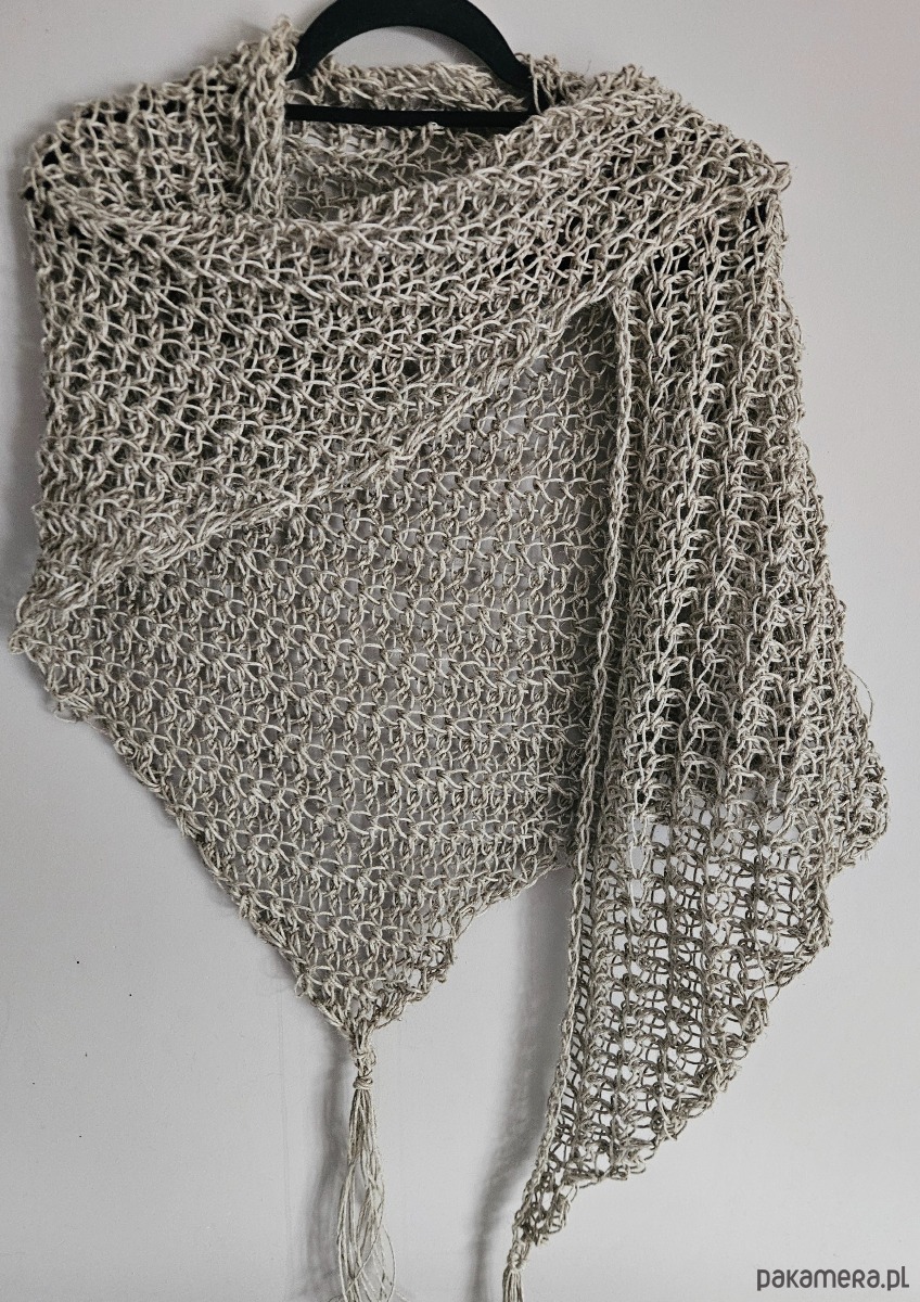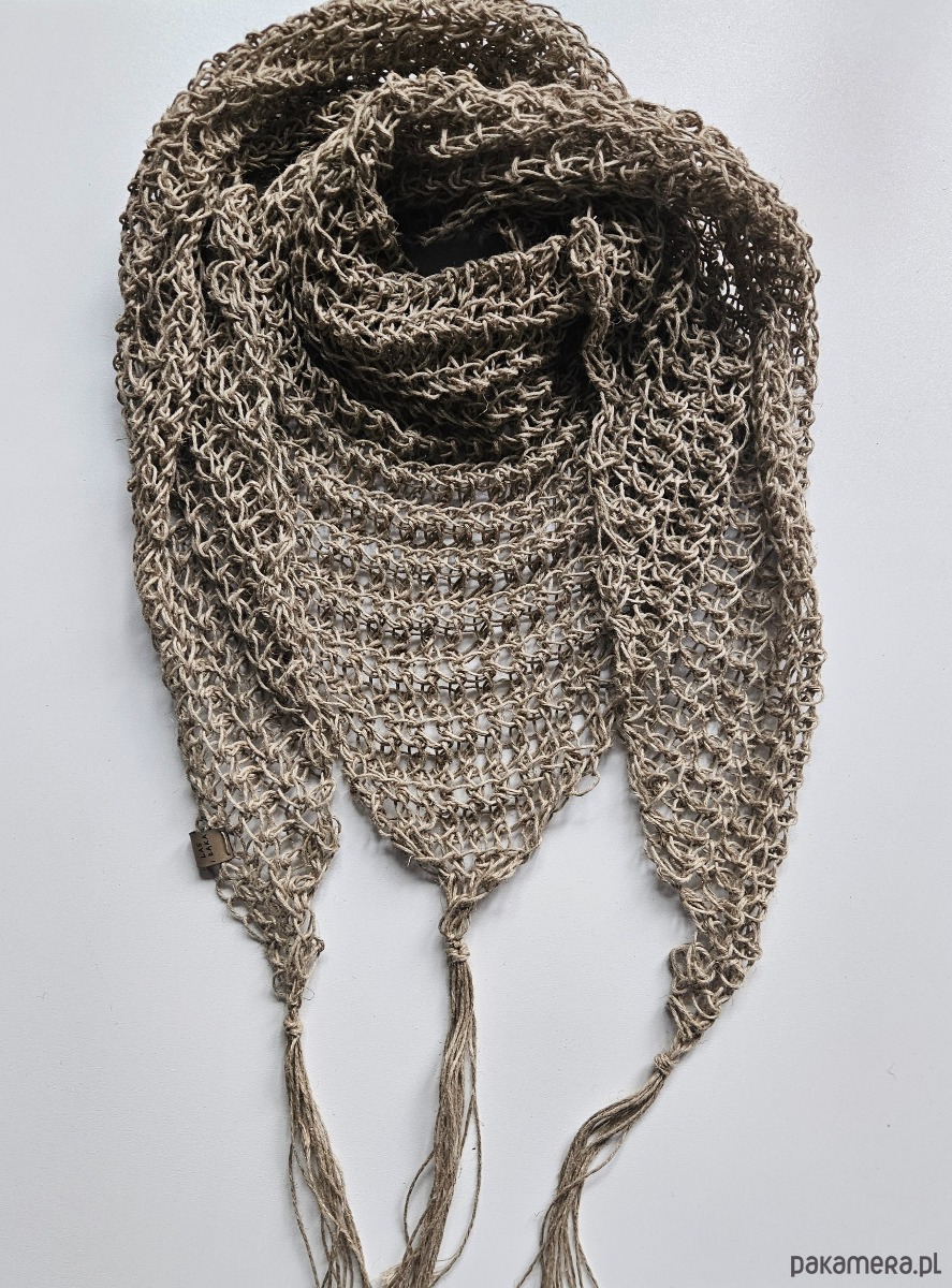 Ręcznie wykonana chusta na szydełku ze sznurka lnianego to połączenie naturalności, prostoty i ponadczasowego stylu. Ażurowy splot sprawia, że chusta jest lekka i przewiewna, a jednocześnie efektowna i przyjemna w noszeniu.
