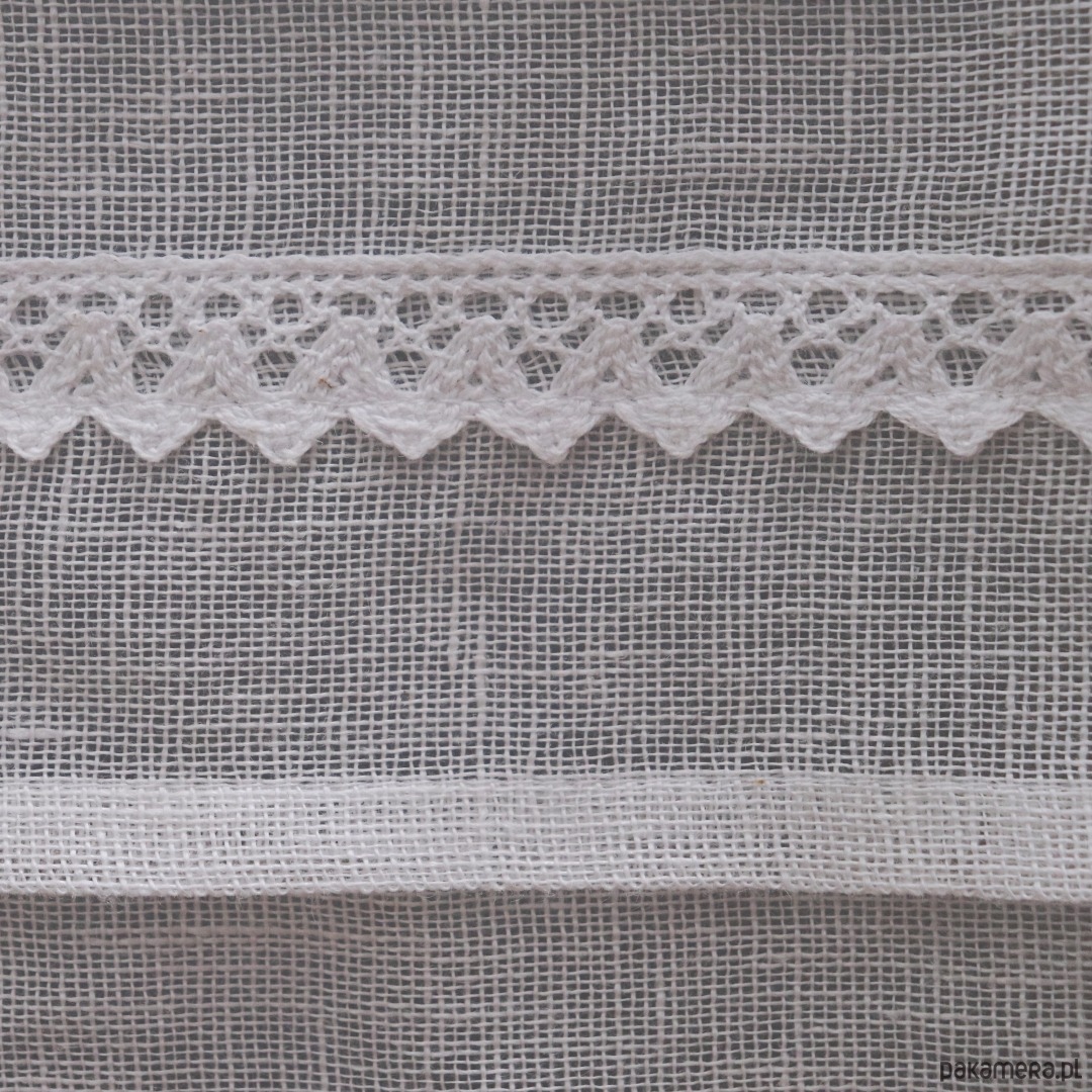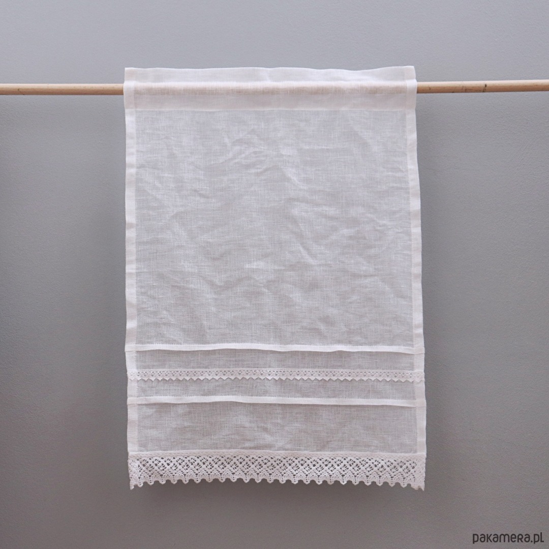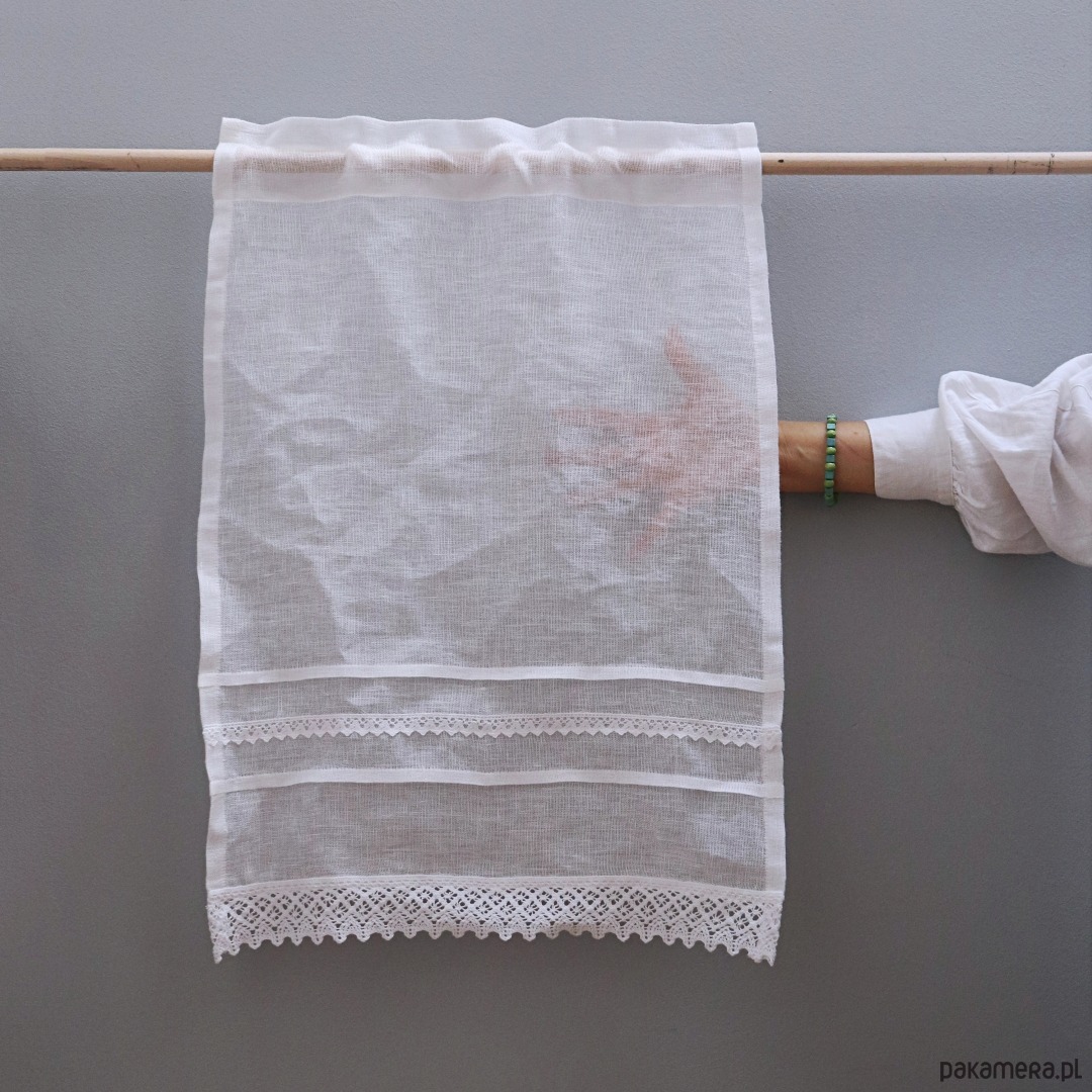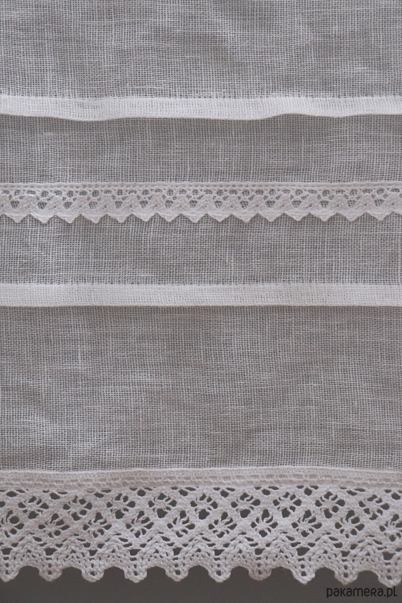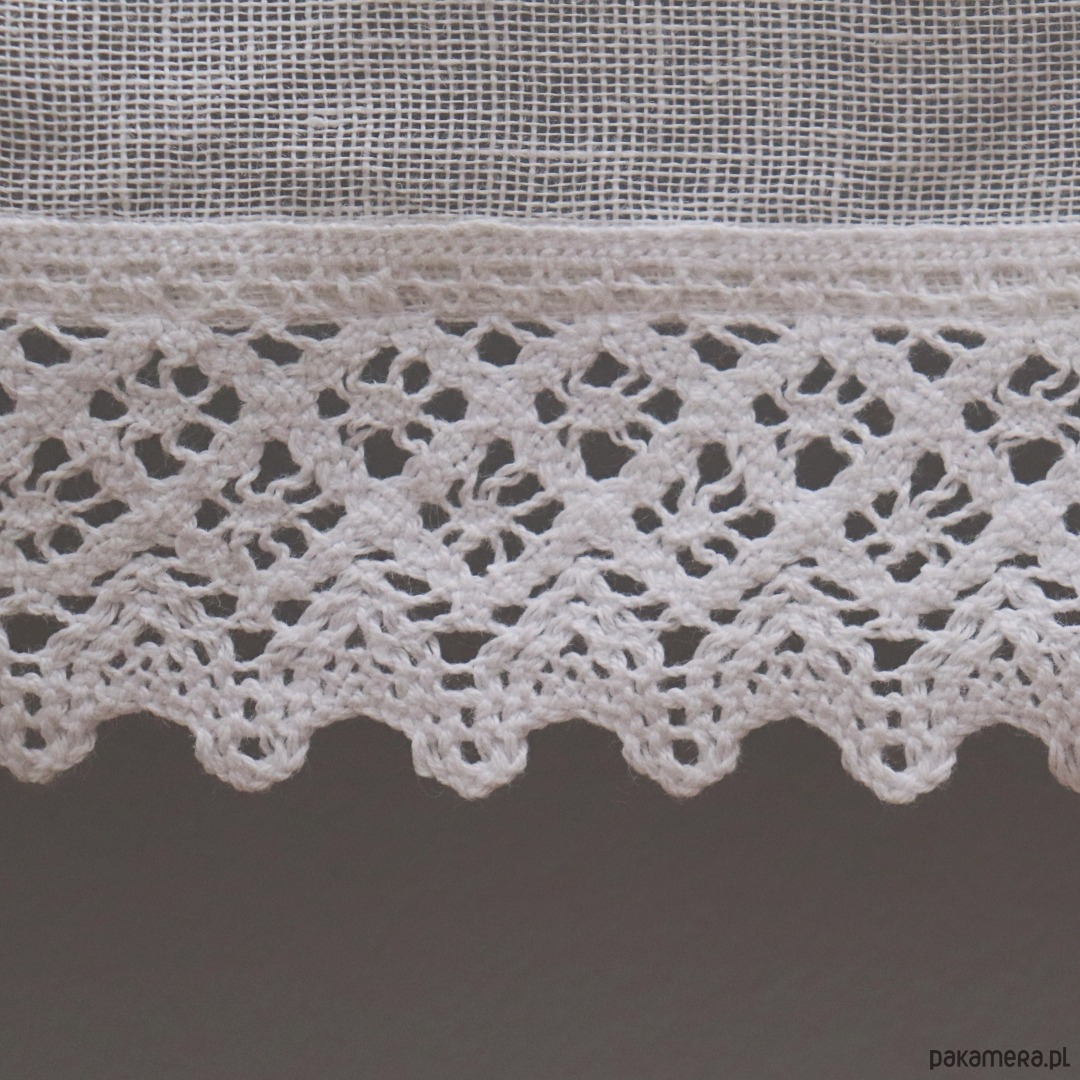 • Surowce: biały, transparentny len (100% len, 100 g/m²), bawełniane koronki