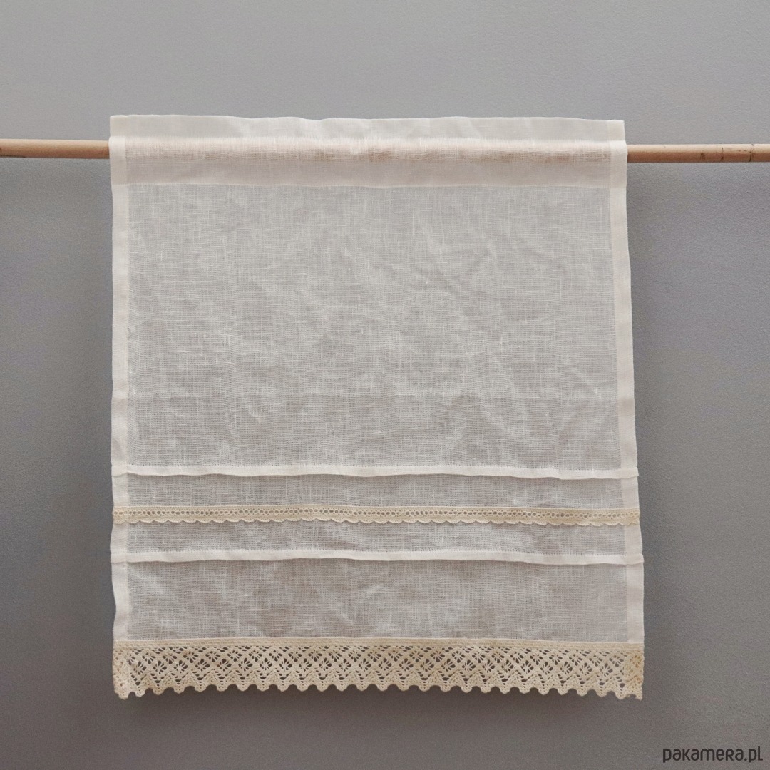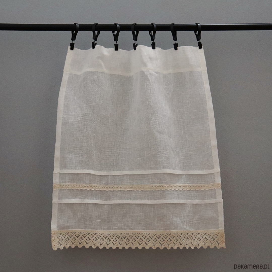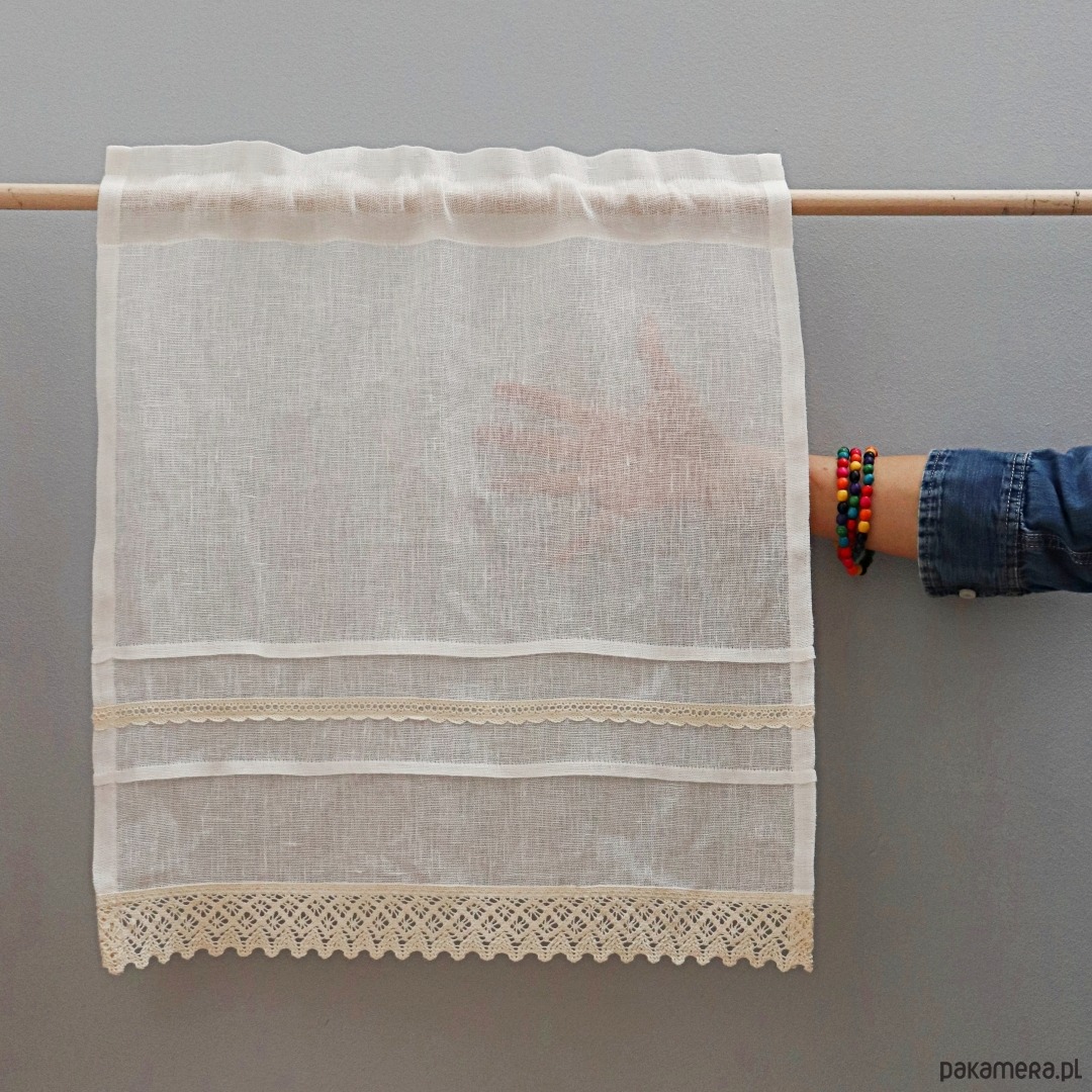 Lniana firana do kuchni KORONKI ecrue na tunel
