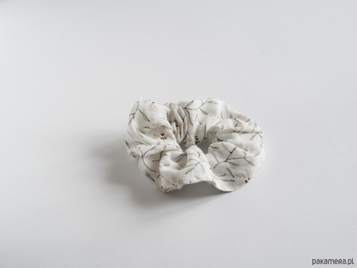 Lniana gumka do włosów (scrunchie) ze wzorem w kwiaty