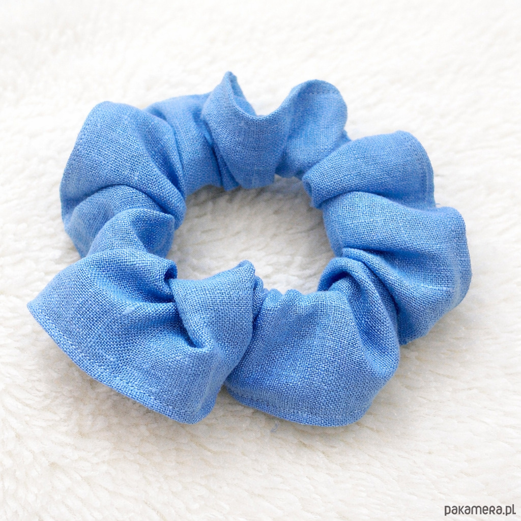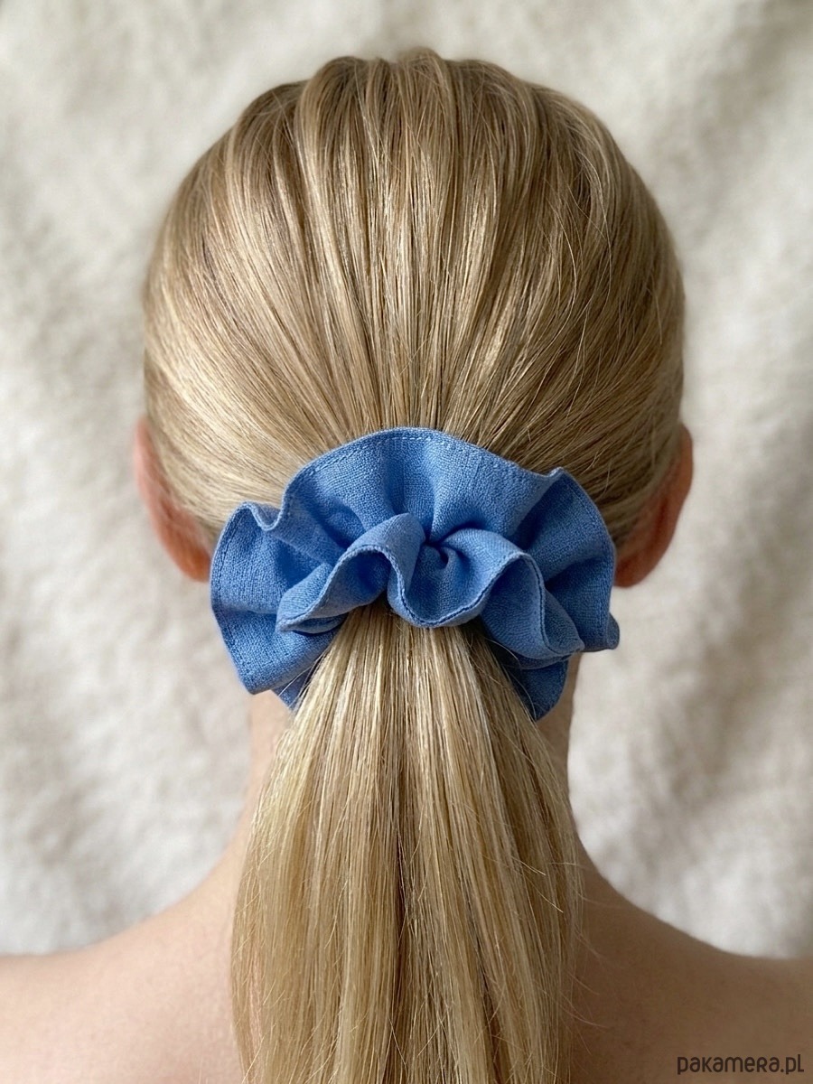 Len to materiał oddychający, trwały i przyjemny w dotyku, dzięki czemu gumka świetnie sprawdza się zarówno na co dzień, jak i przy bardziej eleganckich stylizacjach. Miękka forma scrunchie dobrze trzyma włosy, nie ciągnąc ich i nie powodując zagnieceń.