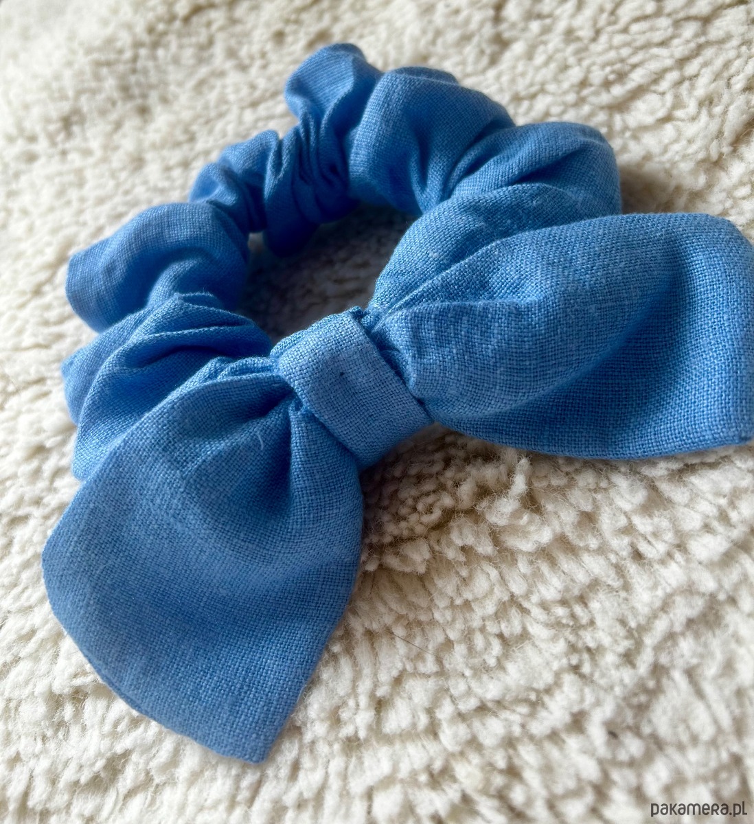Lniana gumka scrunchies do włosów z kokardą