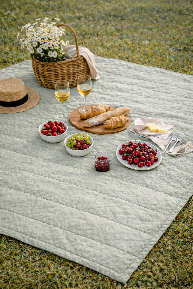 Wypełnienie (200 g/m² włókna poliestrowe) delikatnie otula, nie obciążając ciała. Pikowanie co 20 cm utrzymuje formę kołdry i podkreśla jej minimalistyczny, dopracowany charakter.
