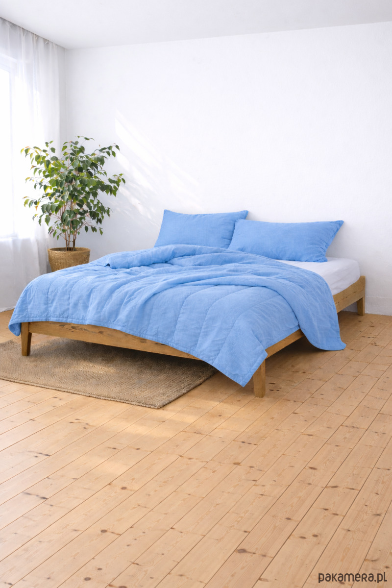Lniana kołdra bezposzewkowa 140x200cm - niebieski
