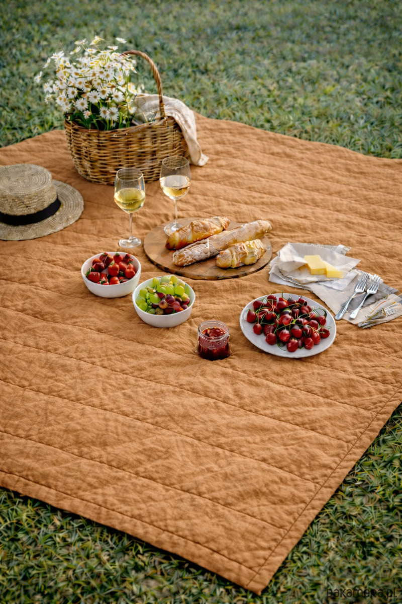 Lniana kołdra z wypełnieniem z bawełny organicznej, 140x200cm - karmel