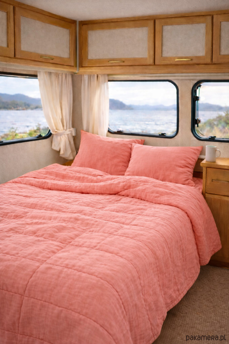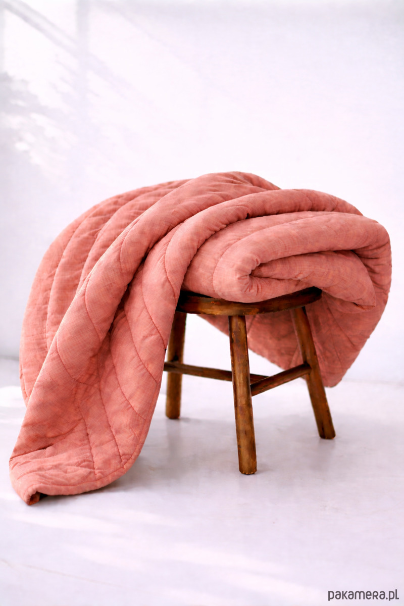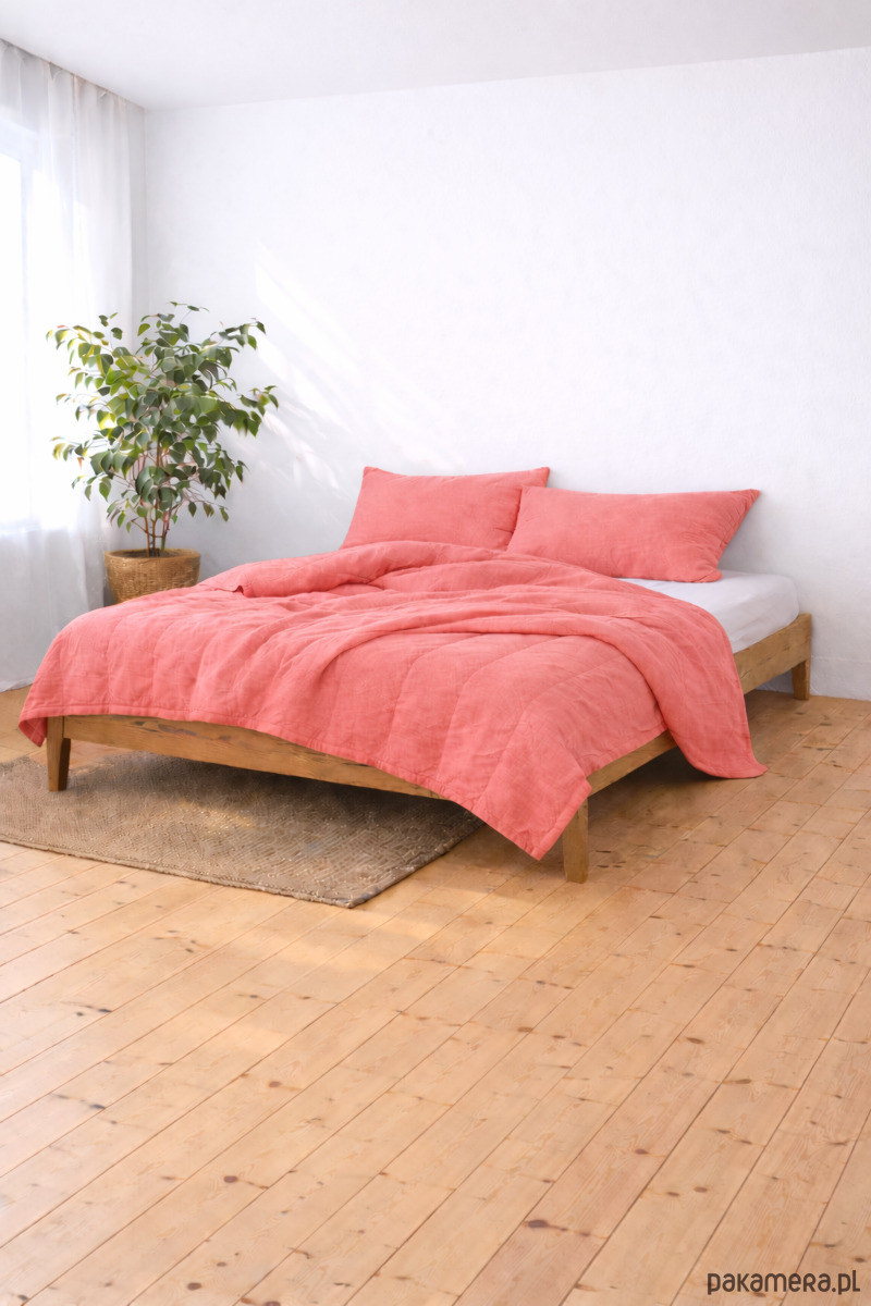 Lniana kołdra z wypełnieniem z bawełny organicznej, 140x200cm - koralowy