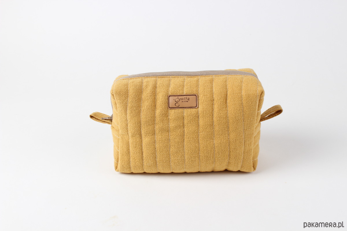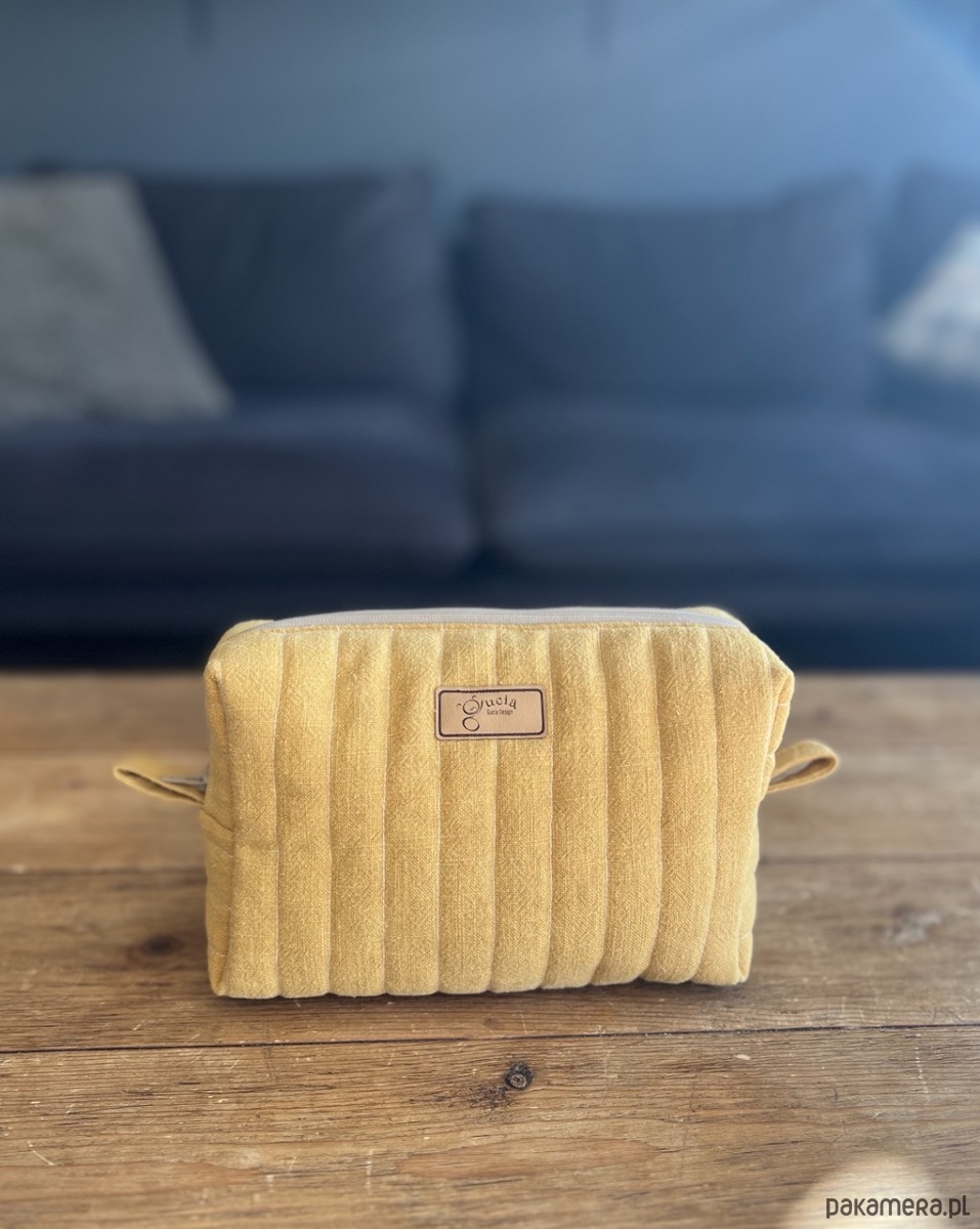 Lniana kosmetyczka box - musztarda
