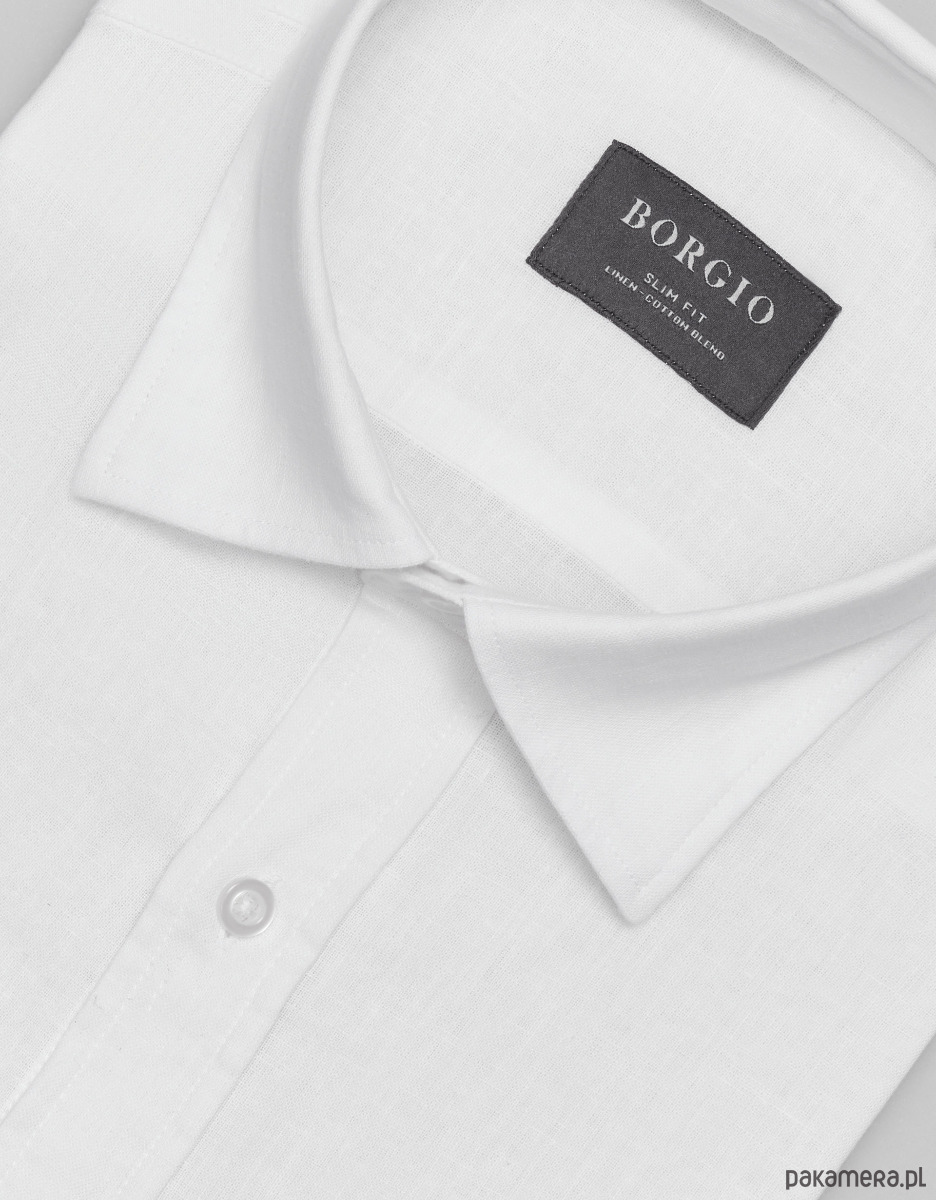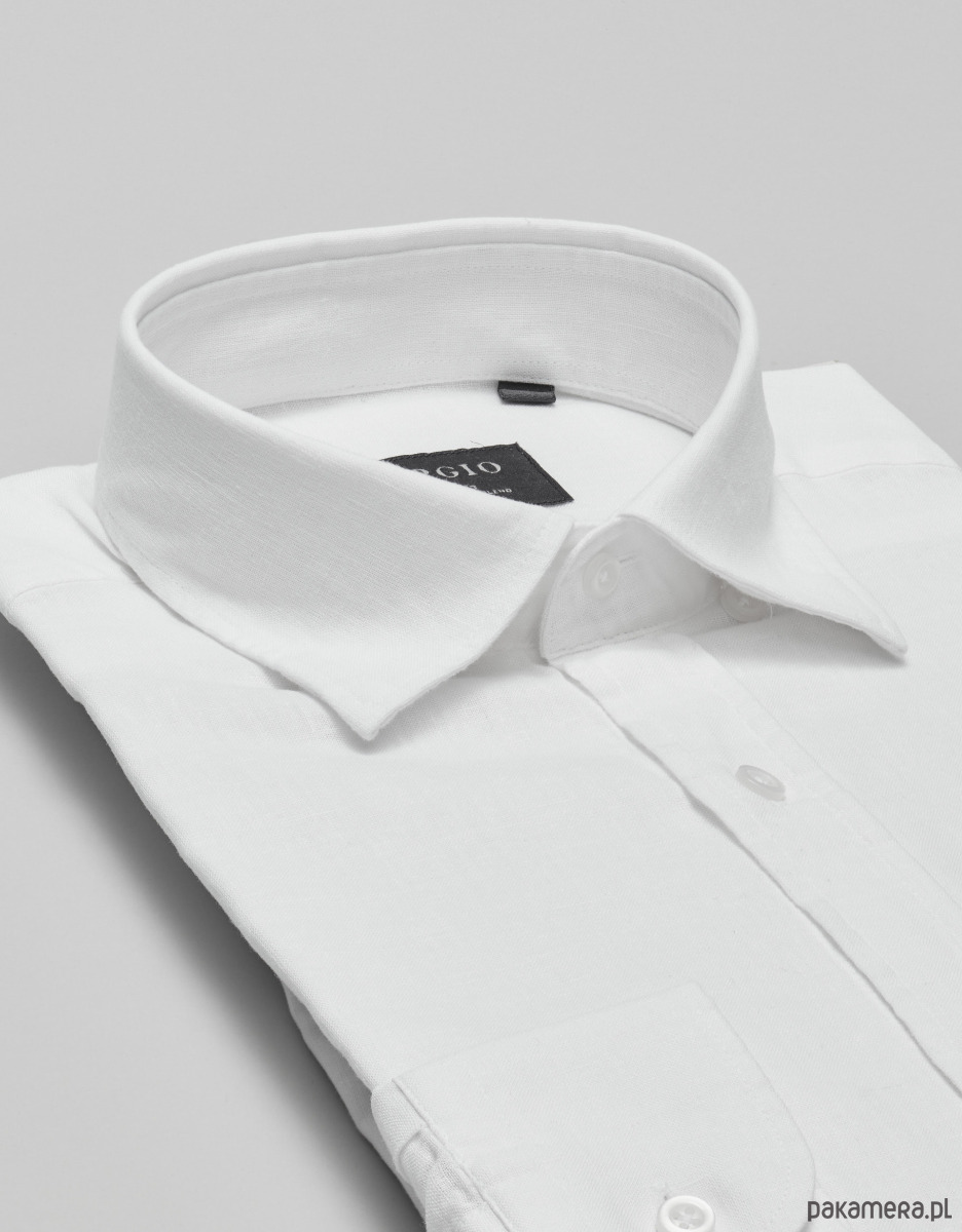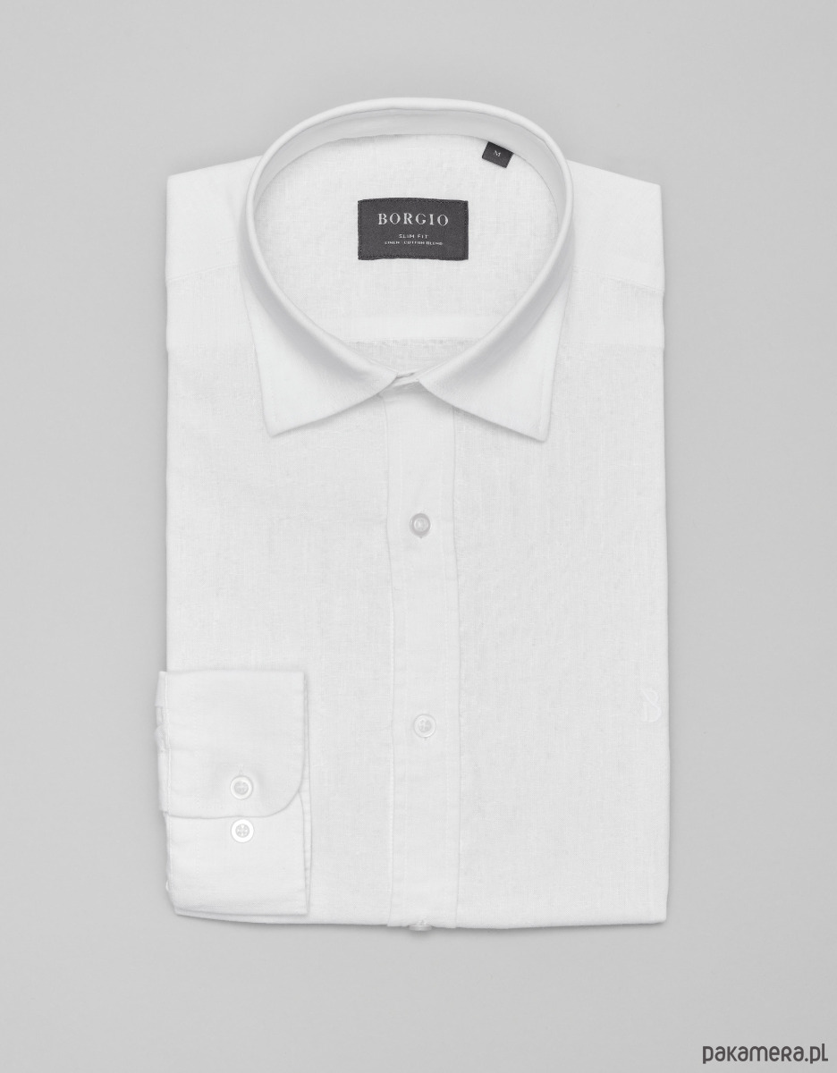 Lniana koszula lentane 00482 długi rękaw biała slim fit
