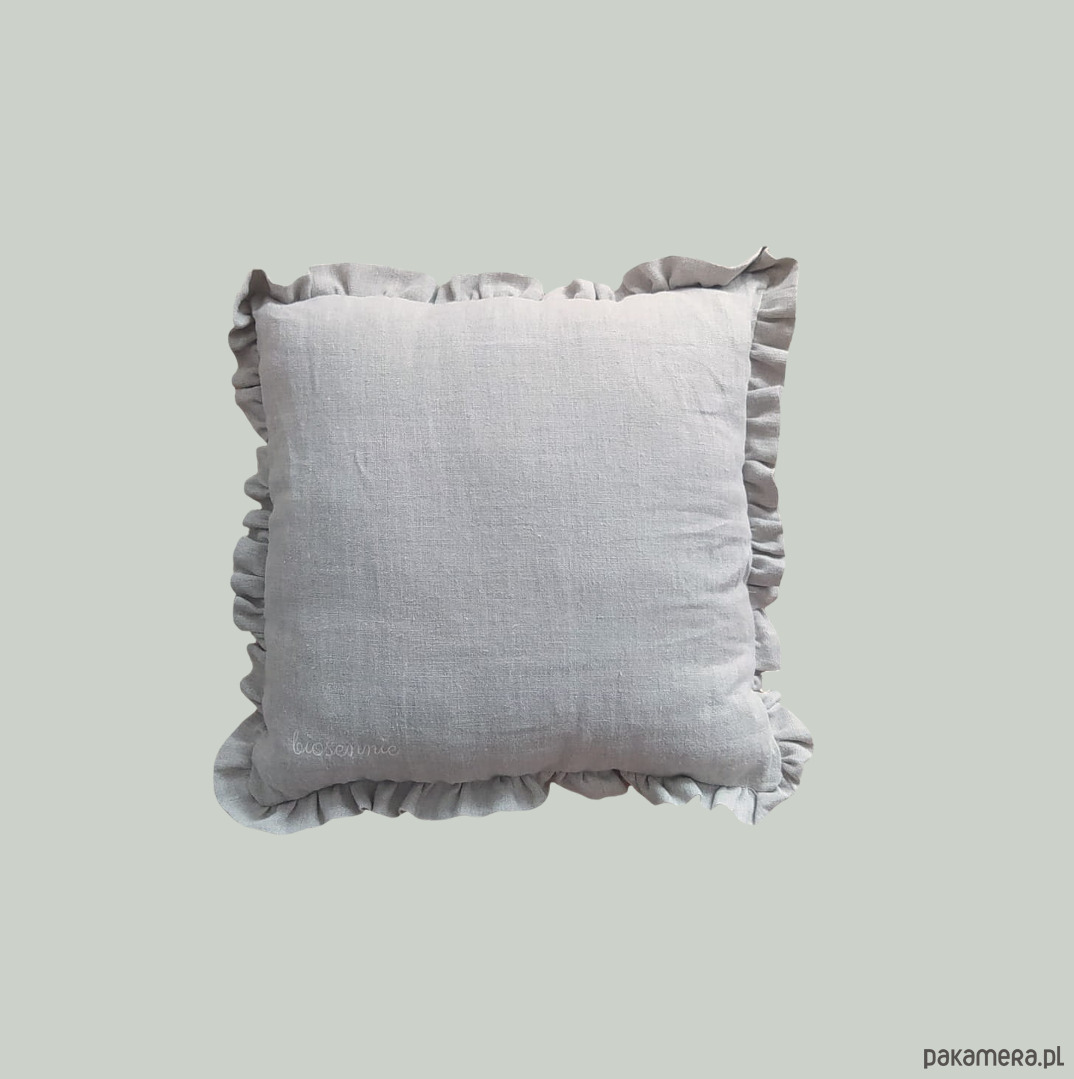Lniana kwadratowa poduszka dekoracyjna z falbaną Biosennie