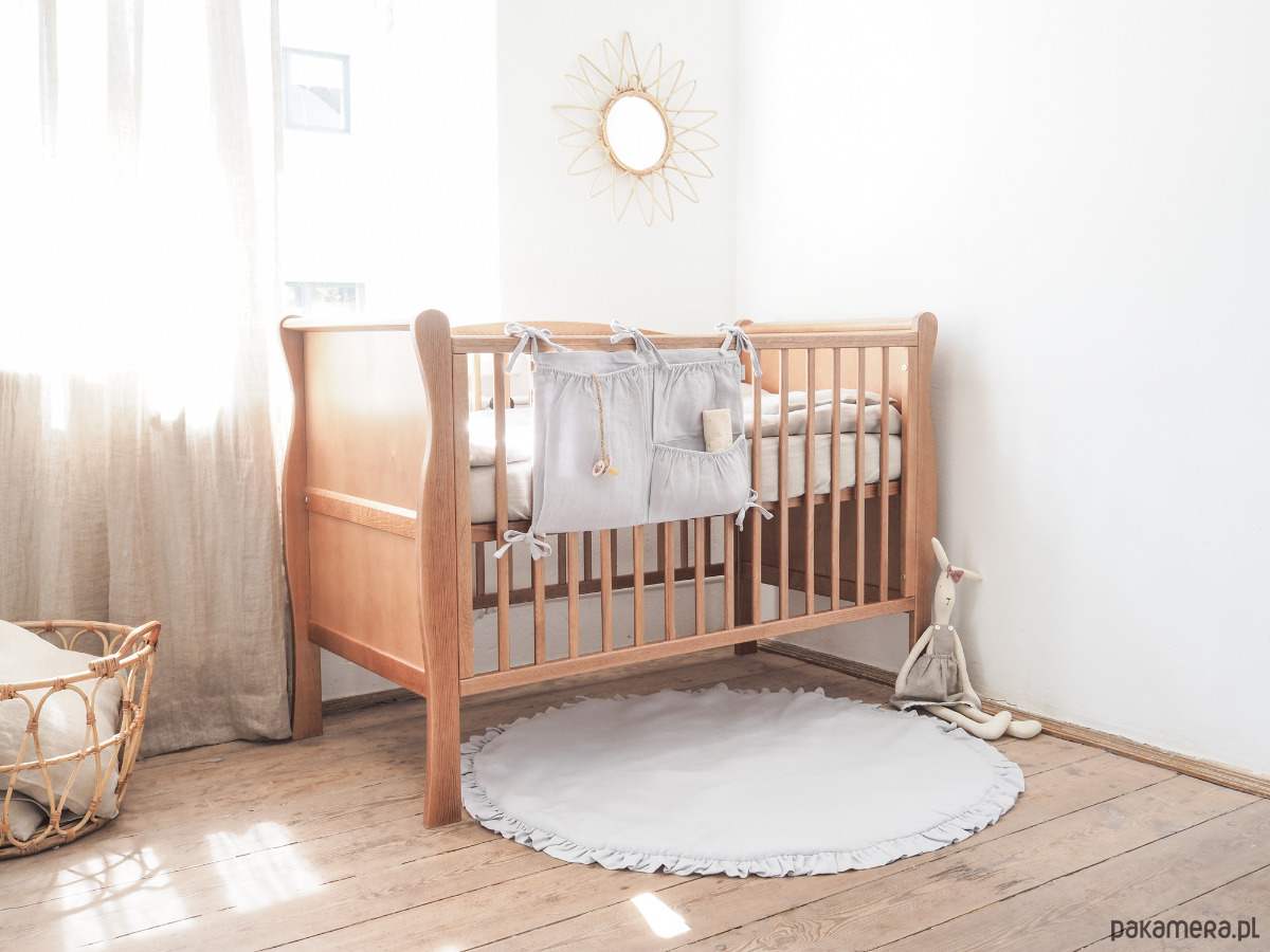 Lniana mata dziecięca stworzona z miękkiego lnu typu stonewashed stanowi idealny dodatek do pokoju malucha. Przydatna jako podłoże do leżakowania dla niemowlaka oraz jako wygodne miejsce do zabaw dla starszaka lub element dekoracyjny wnętrza. Wewnątrz maty znajduje się antyalergiczna owata, która izoluje od zimnej podłogi.
