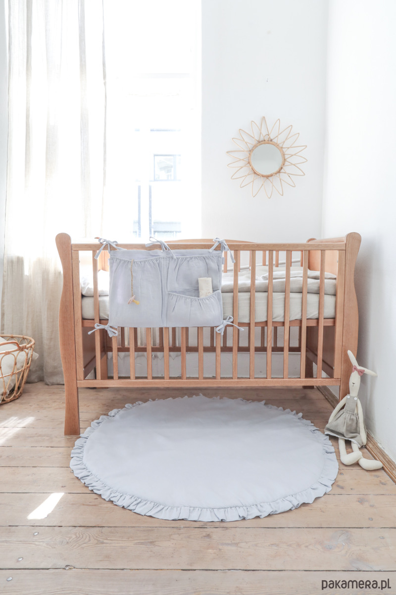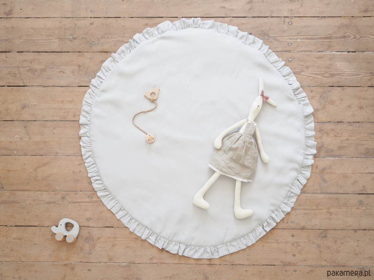 Lniana mata z falbanką do zabawy LIGHT GRAY