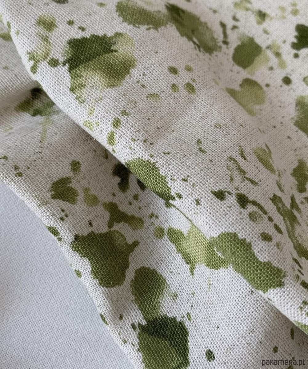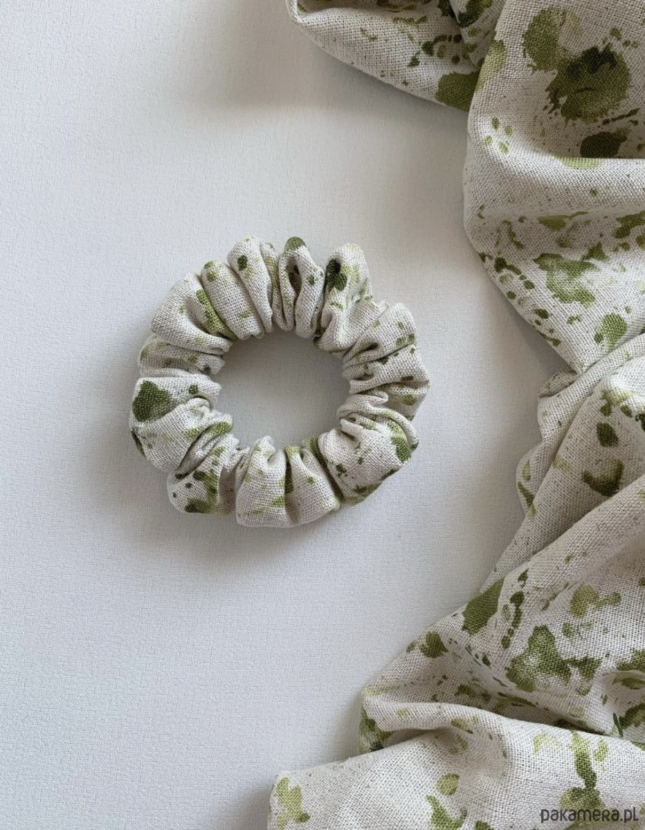 Płaska lniana opaska do włosów Amelia w uroczy print z zielonymi plamkami to minimalistyczny a zarazem efektowny dodatek do każdej stylizacji.