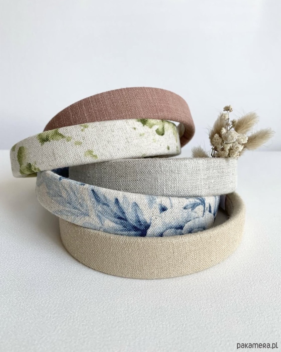 Płaska lniana opaska do włosów Amelia w uroczy print z zielonymi plamkami to minimalistyczny a zarazem efektowny dodatek do każdej stylizacji.