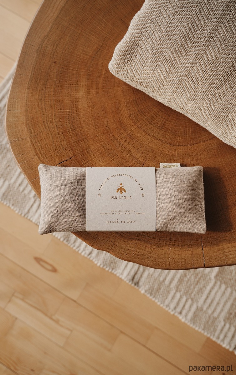 Delikatna, lniana poduszka relaksacyjna na oczy z ekologicznymi nasionami lnu i lawendą
