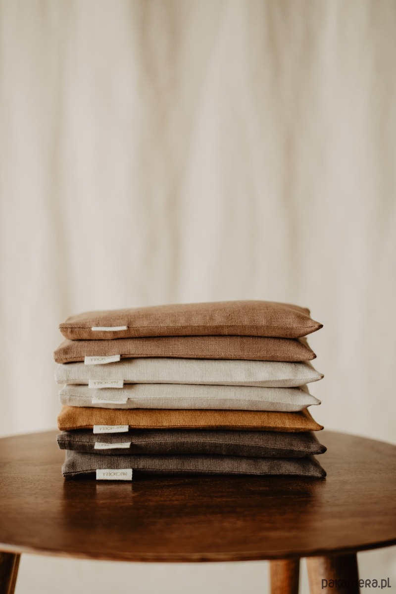 Nasiona lnu i kwiaty lawendy użyte do wypełniania poduszki pochodzą z polskich, ekologicznych upraw, a użyte tkaniny spełniają standardy OEKO-TEX 100.