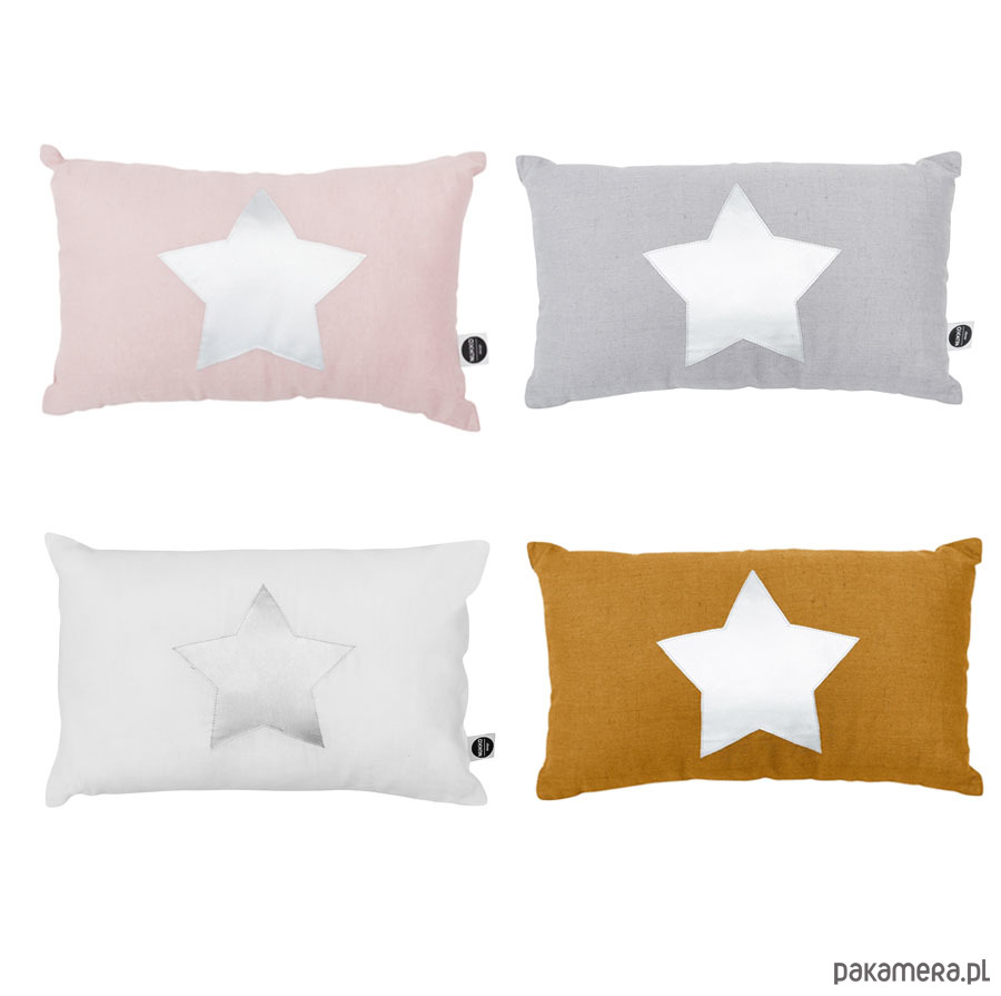 Lniana poduszka ze srebrną gwiazdką doda uroku każdemu wnętrzu. To wyjątkowa dekoracja zarówno do salonu, sypialni, jak i pokoju dziecięcego. Poszewka wykonana jest ze zmiękczanego lnu, dzięki czemu jest miła w dotyku. Posiada ukryty suwak, poszewkę łatwo można zdjąć i uprać. To świetny pomysł na prezent! :)