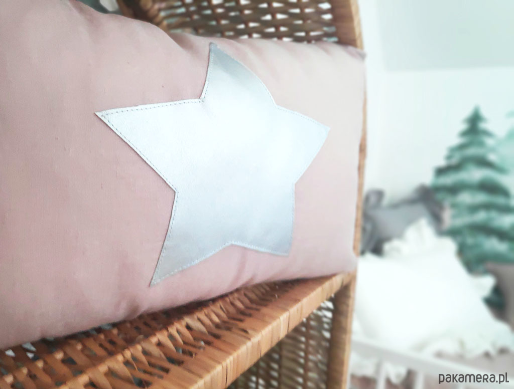 Lniana poduszka ze srebrną gwiazdką BRUDNY Róż